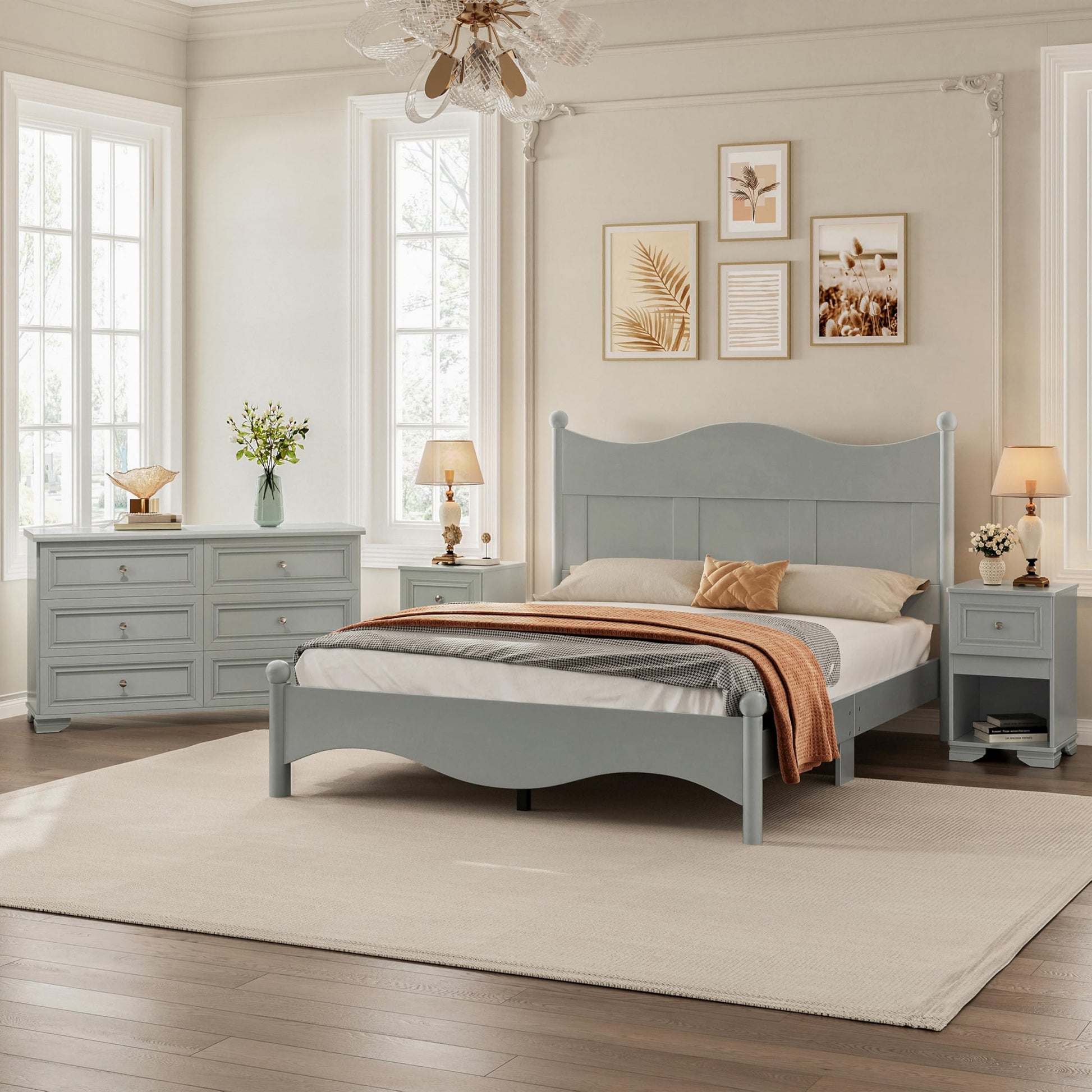 4 Pieces Queen Bedroom Sets, Including Retro Platform Bed Frame