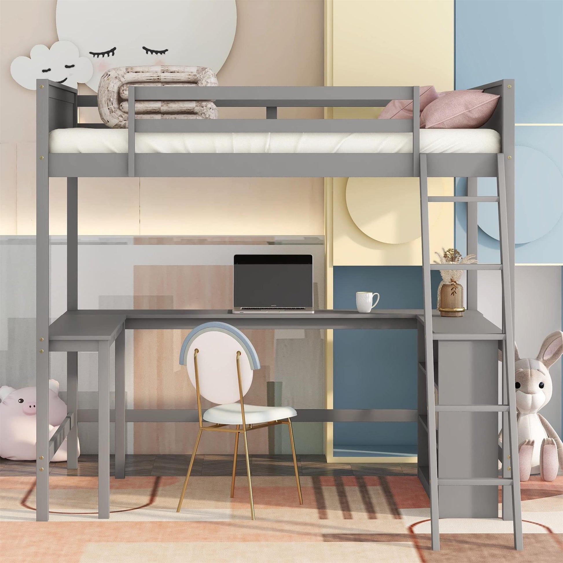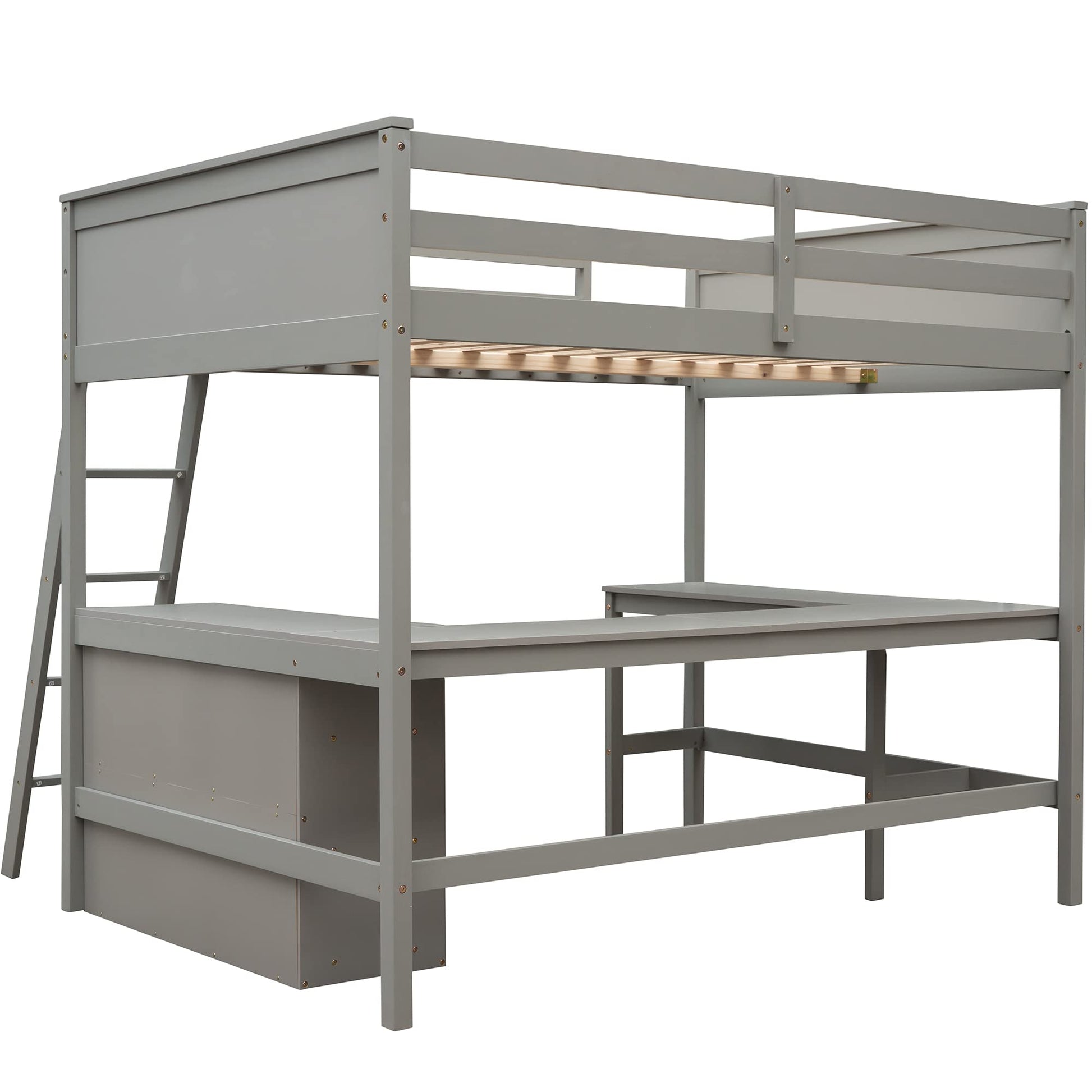 - This full size loft bed with desk anchors your child's room in timeless style. crafted from a solid pine wood frame, with commercial grade MDF board, durable frame for durability and strength, ensuring longevity.and the stable ladder can be The loft bed with desk full size is sturdy and comes with slats for extra support and ensures air moves freely around your mattress to keep it fresh for years to come. No box spring required.High guardrails are solidly attached for added safety.