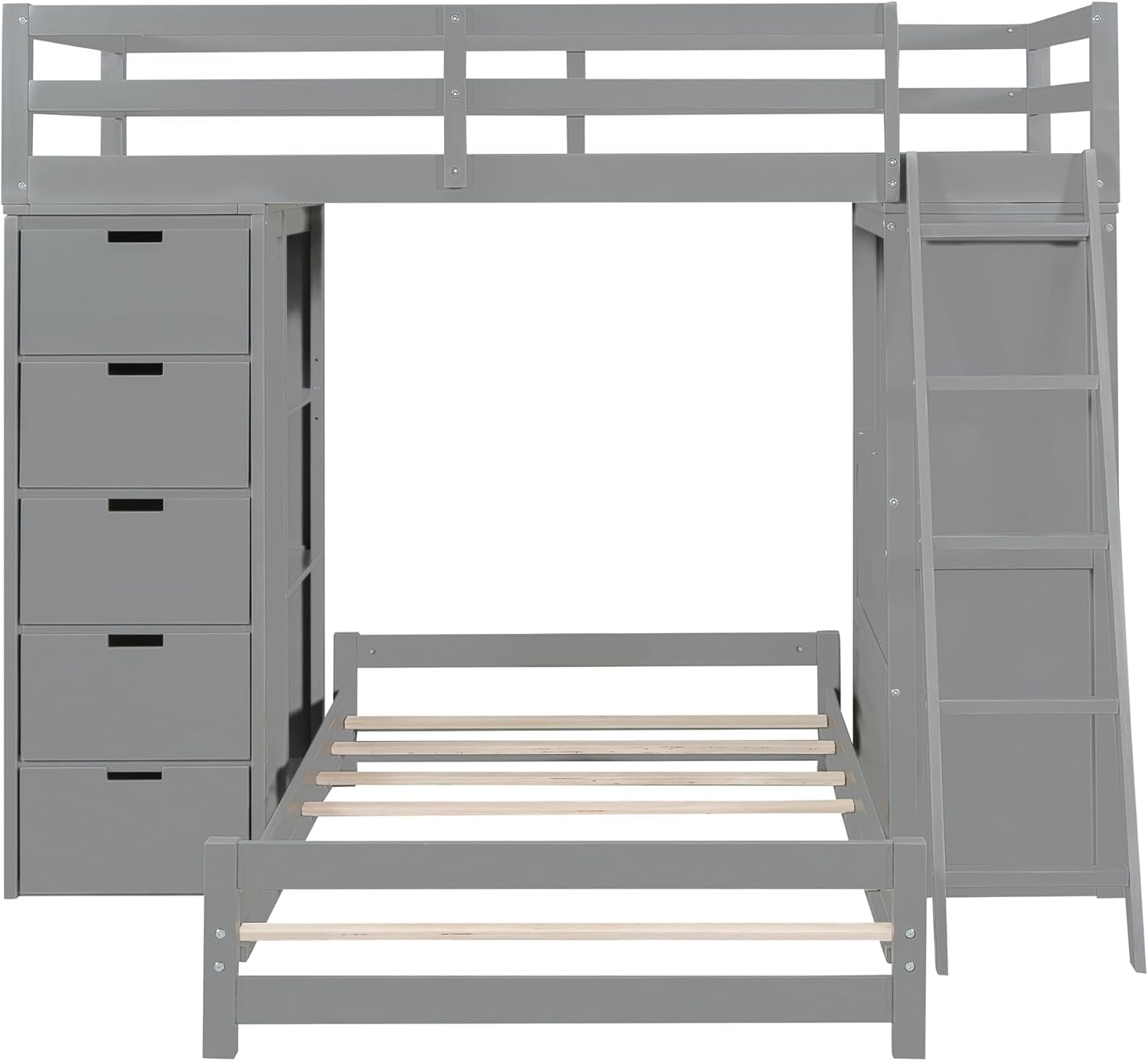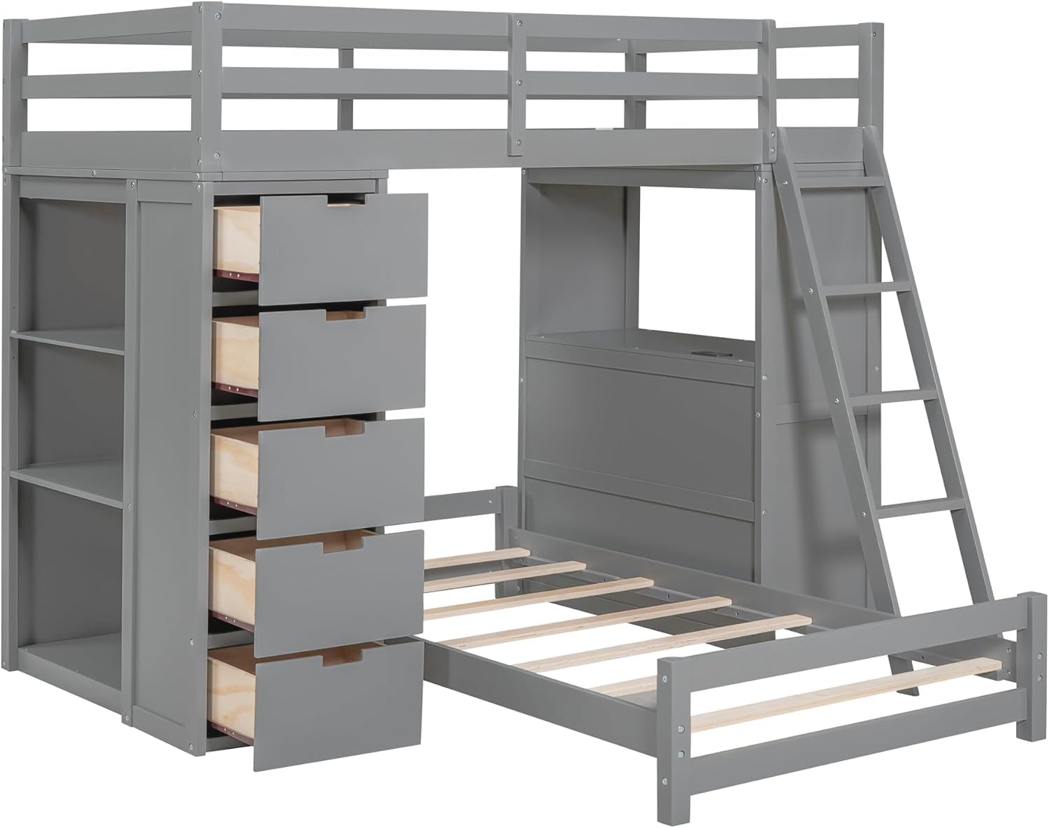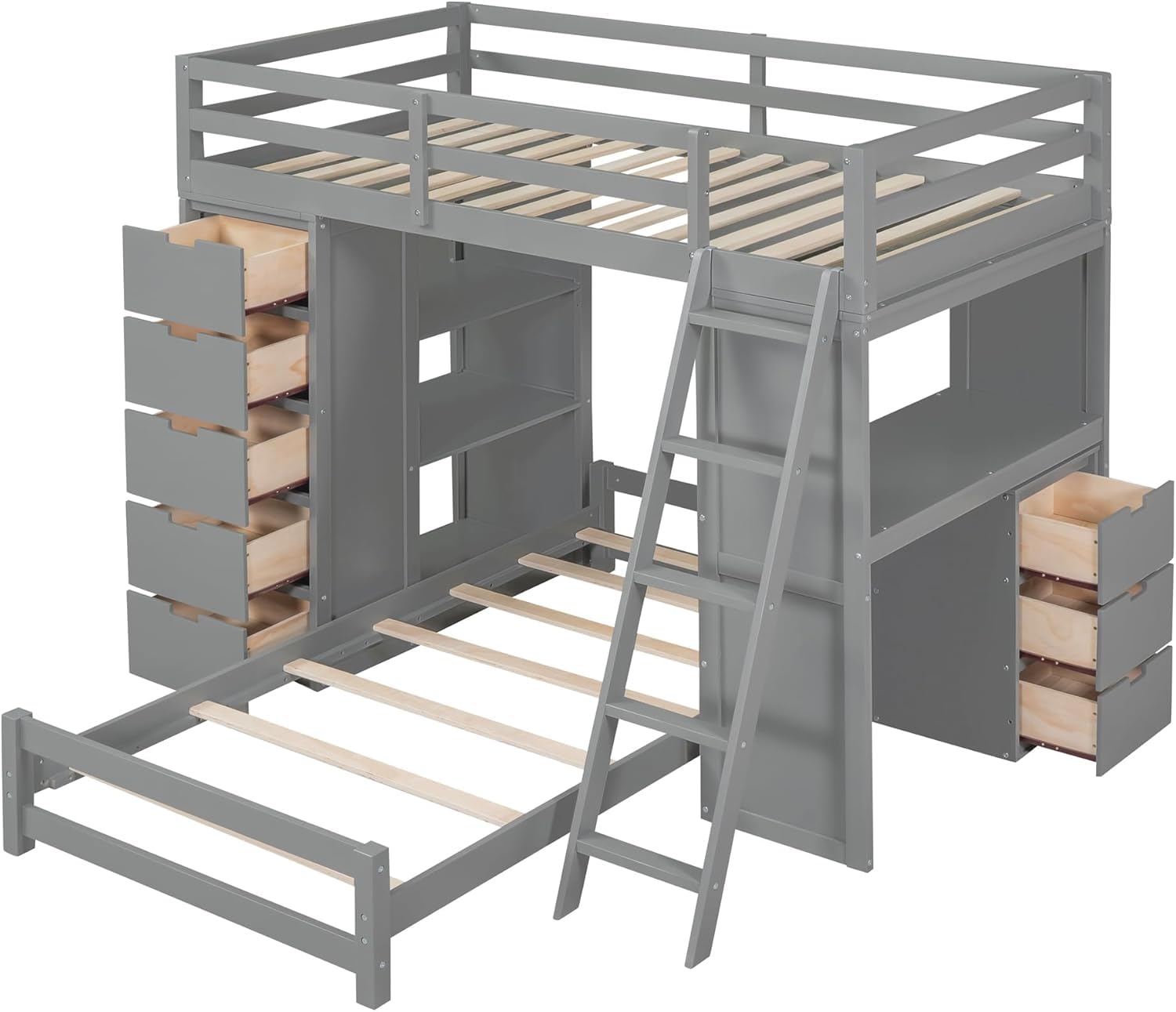 - [Bunk Bed with Storage ] The bed comes with several drawers, shelves and desk, perfect for your home if the room space is limit, which helps to keep the room clean and tidy.