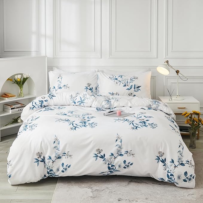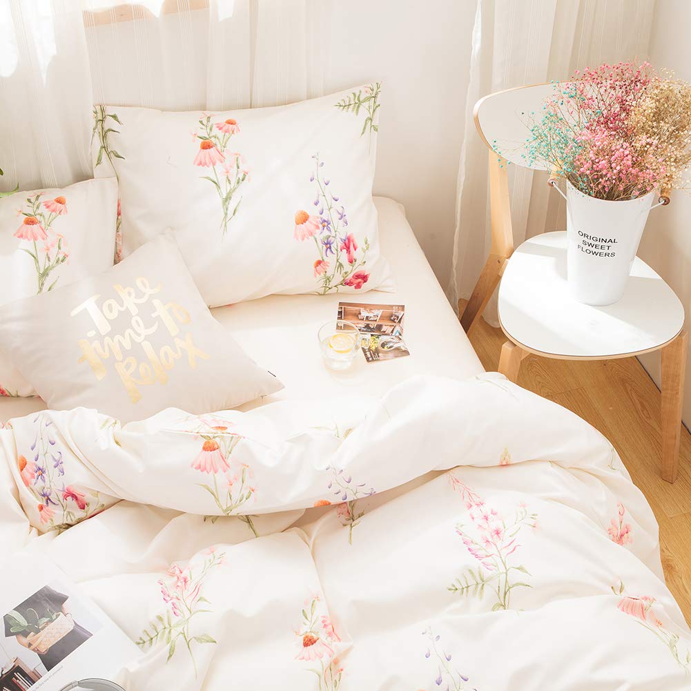 - Twin size comforter set includes 1 comforter and 1 pillowcase in an offwhite botanical floral print