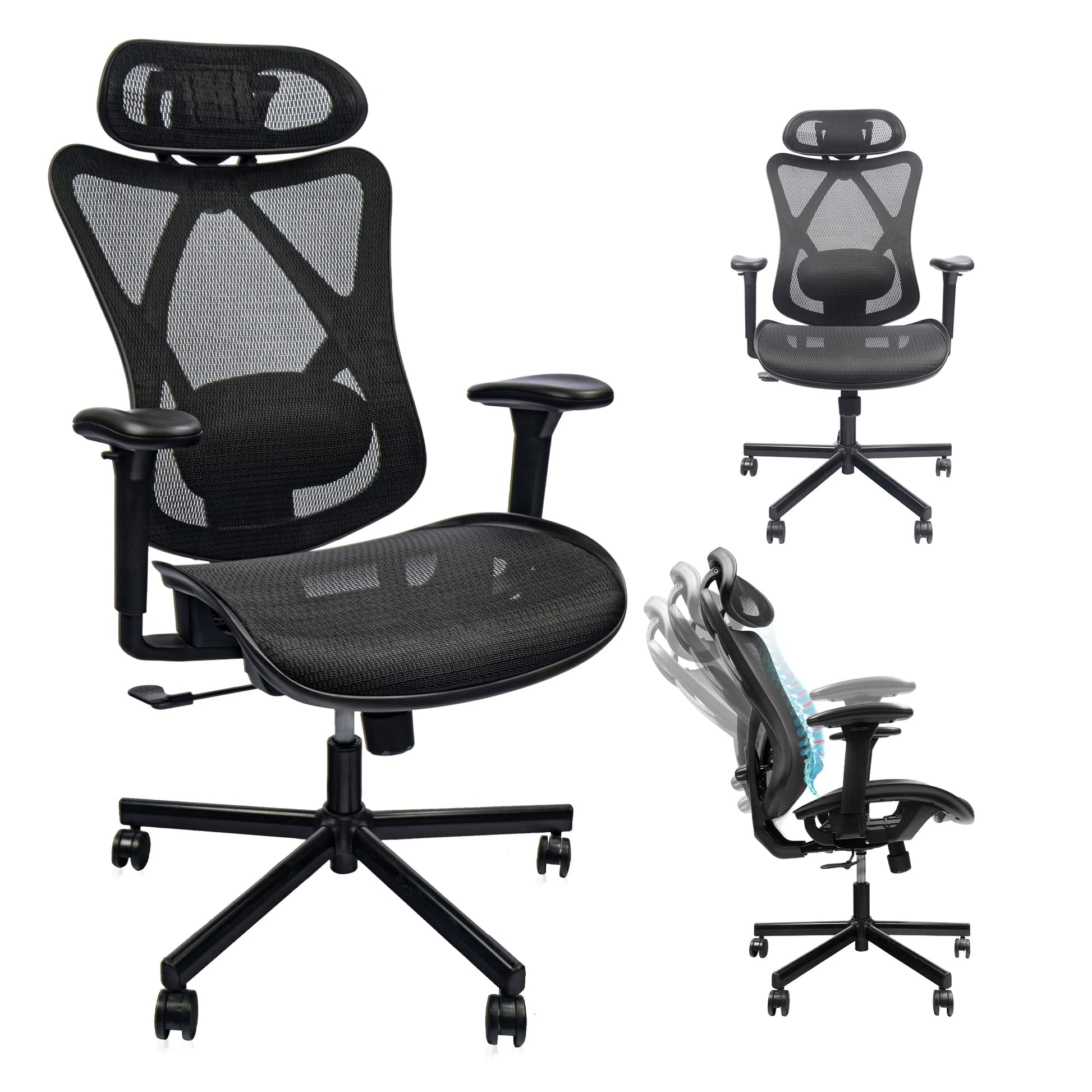 - Adjustable armrest go up and down for the comfortable arm support. The mesh headrest with height and angle adjustment, keep you get great neck support and avoid cervical pain. The ergonomic chair is sturdy with a max capacity 280lbs.