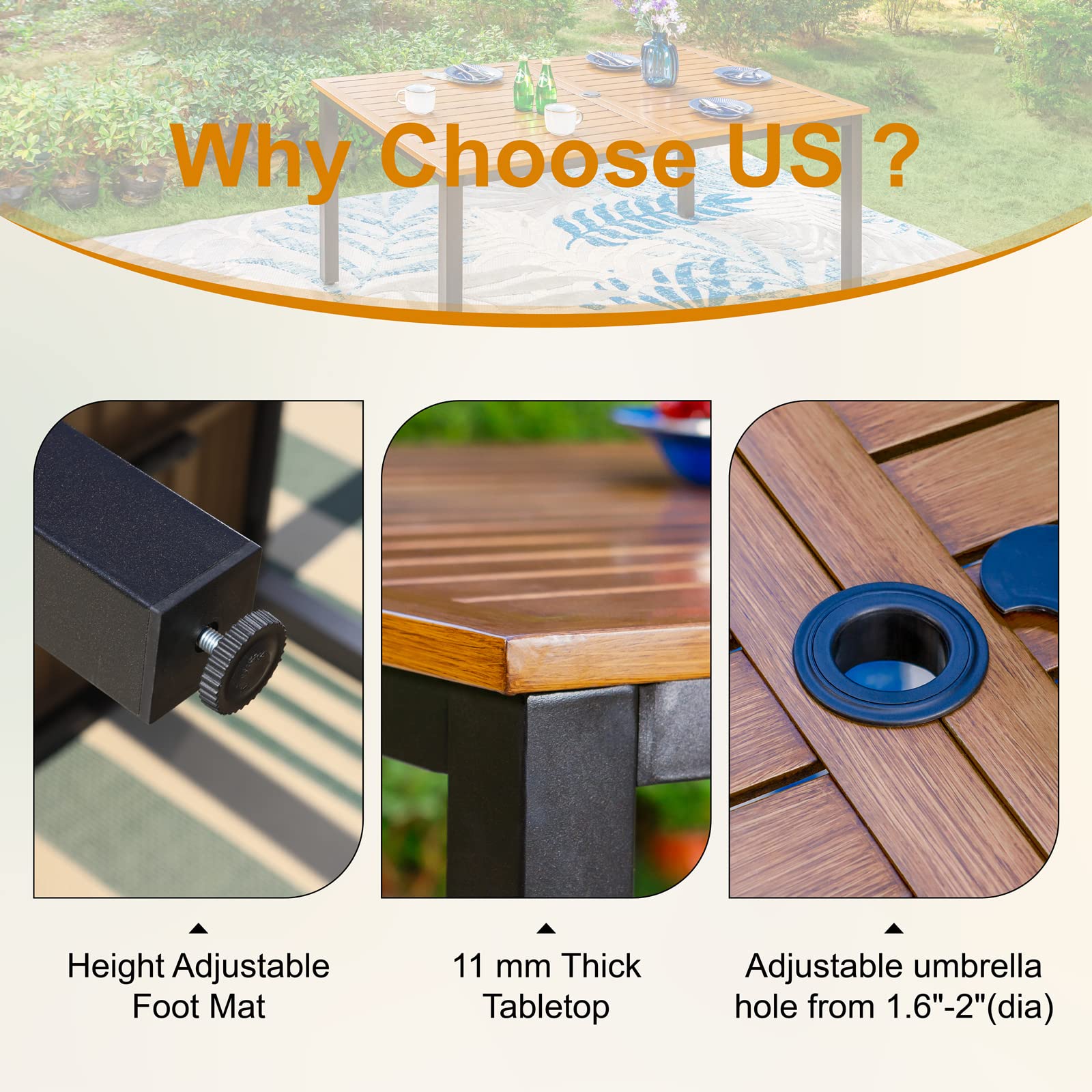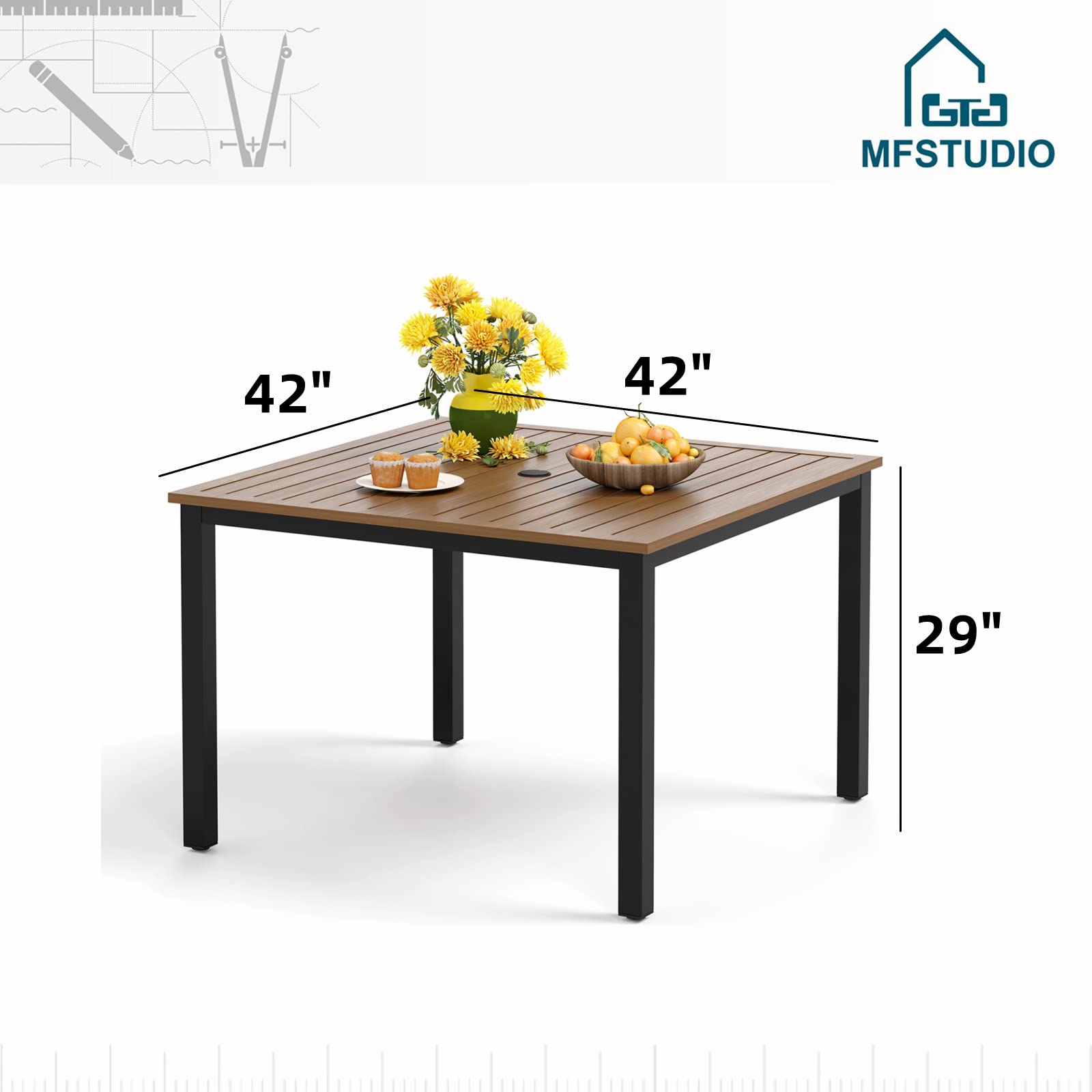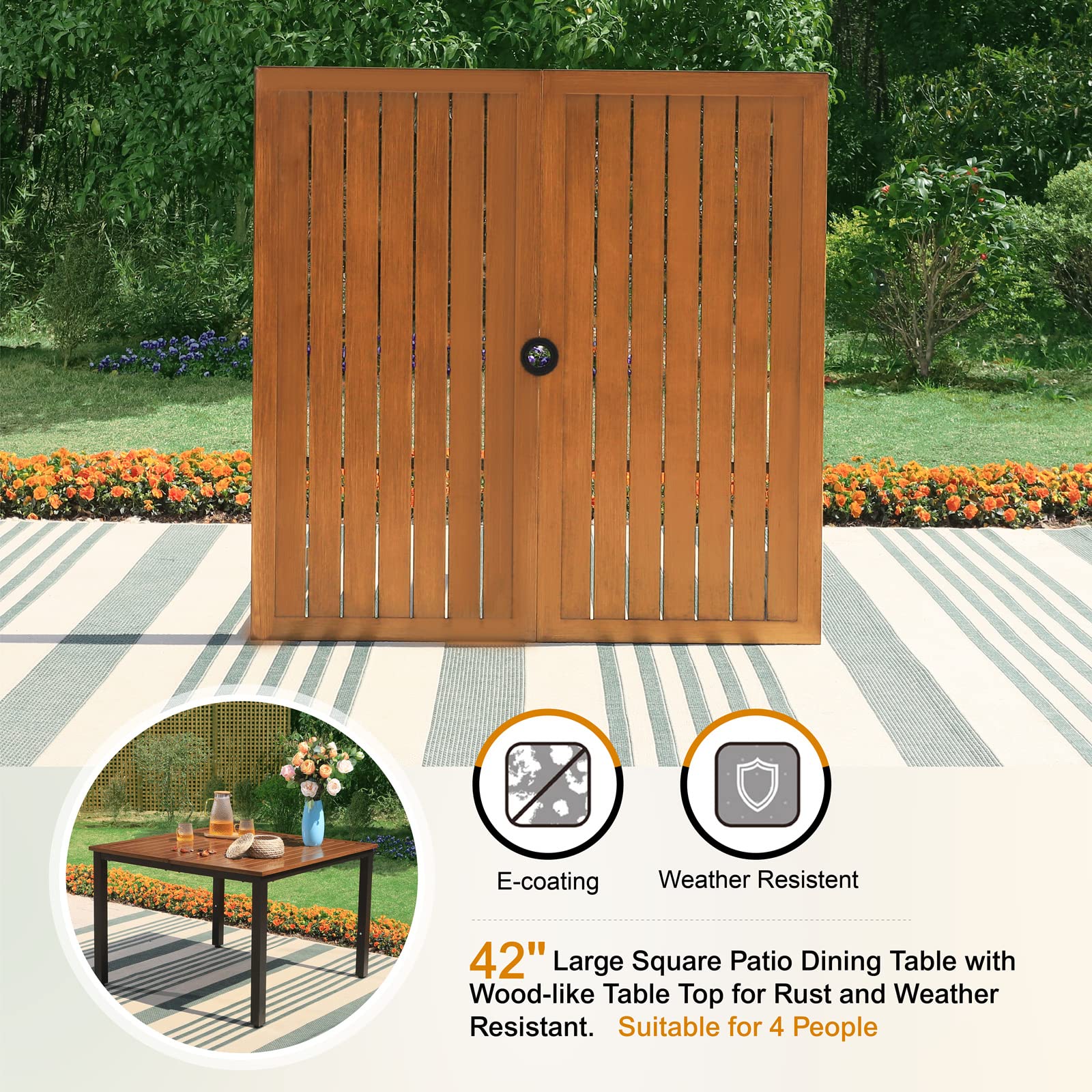 42" Square Outdoor Dining Table, Patio Furniture Wood-Like Tabletop