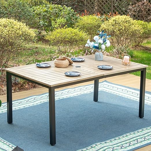 - Sturdy & Durable:Heavy -Duty Elegant Steel Frame, with E-coating for Rust and Corrosion Resistant. Metal steel frame longevity with e-coating needs no special maintenance, rust and weather resistant, easy to clean, easy to assemble. Table weights capacity: 150 LBS