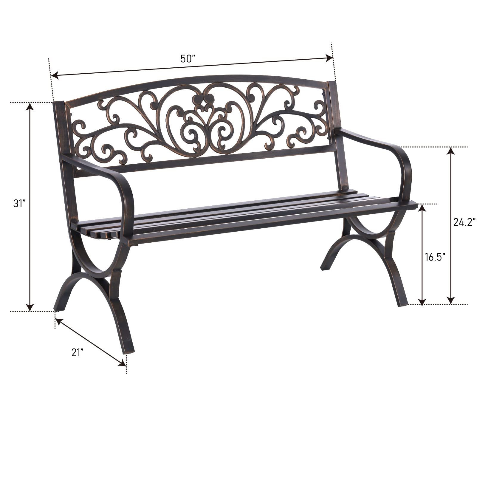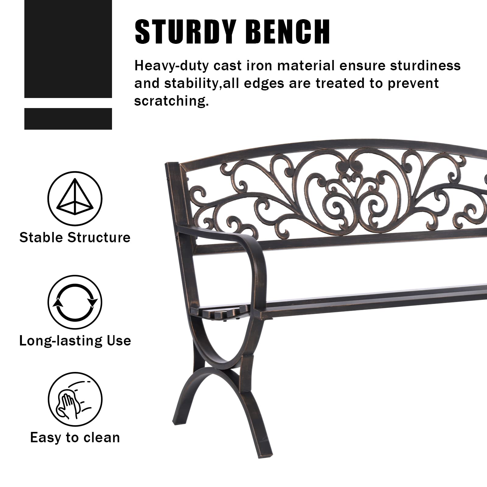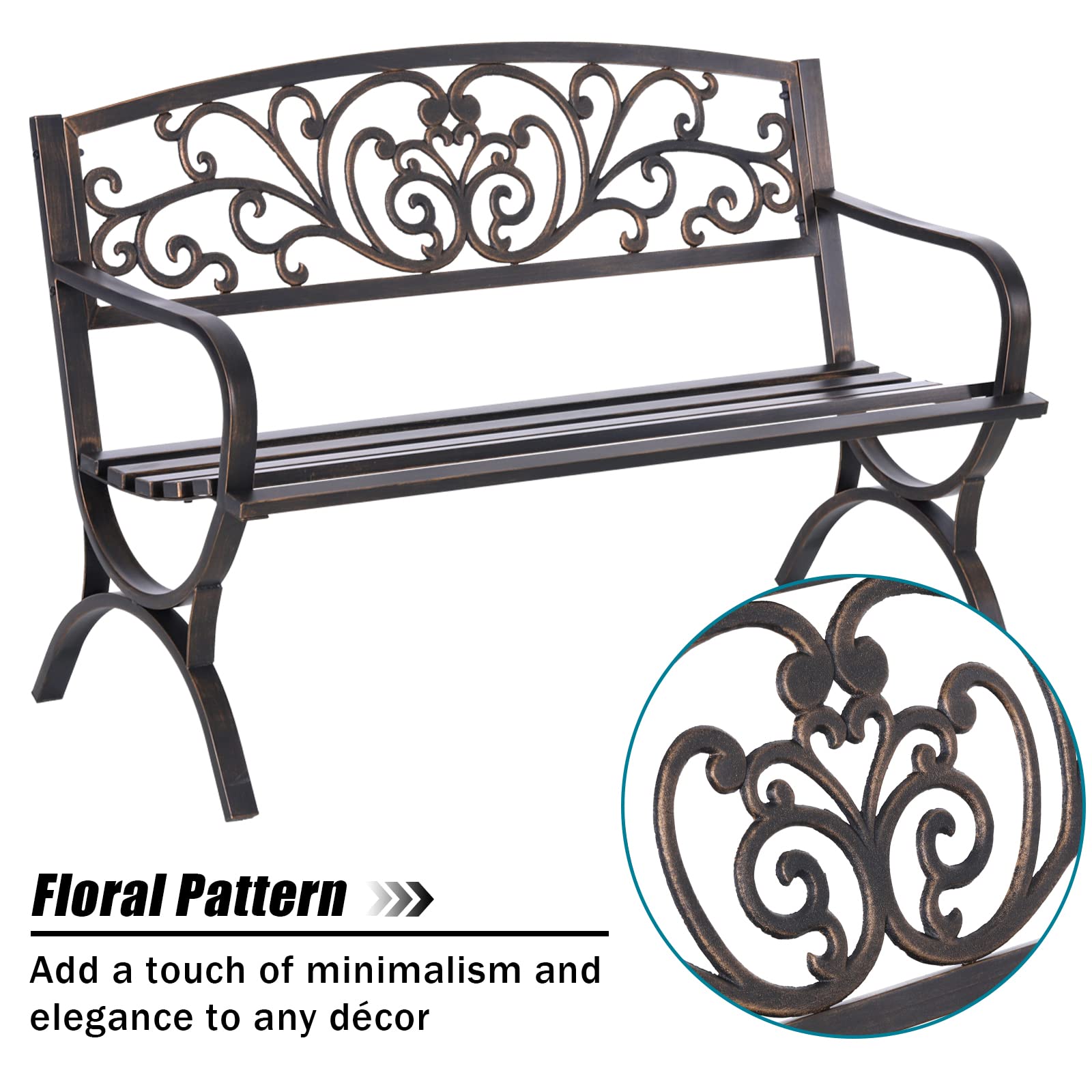 50 Inches Outdoor Garden Bench,Cast Iron Metal Bench with Floral Pattern