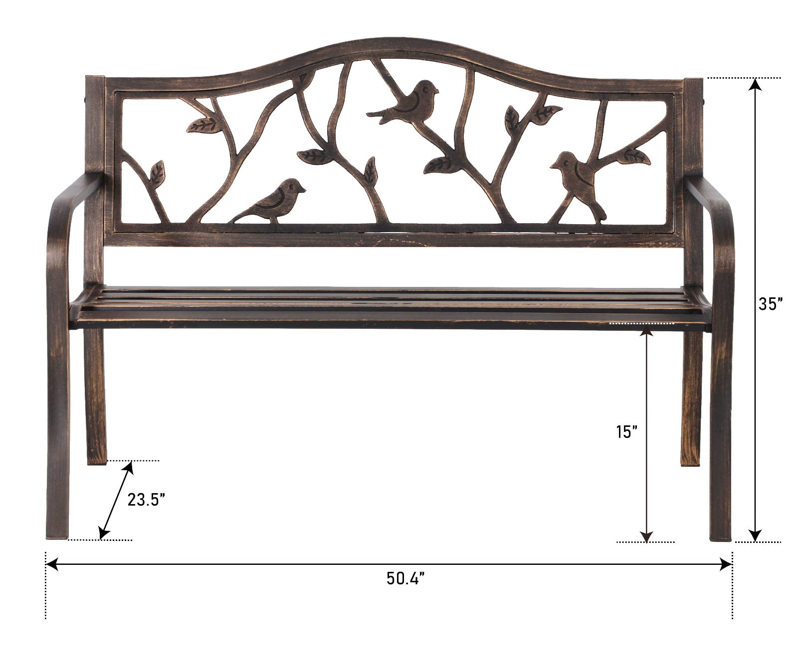 - Unique Bird Pattern :Elegant designed with the pastoral bird decoration on the backrest,add a sense of decoration to your patio,garden,lawn,backyard and more.Bronze color make the bench has the retro design style.