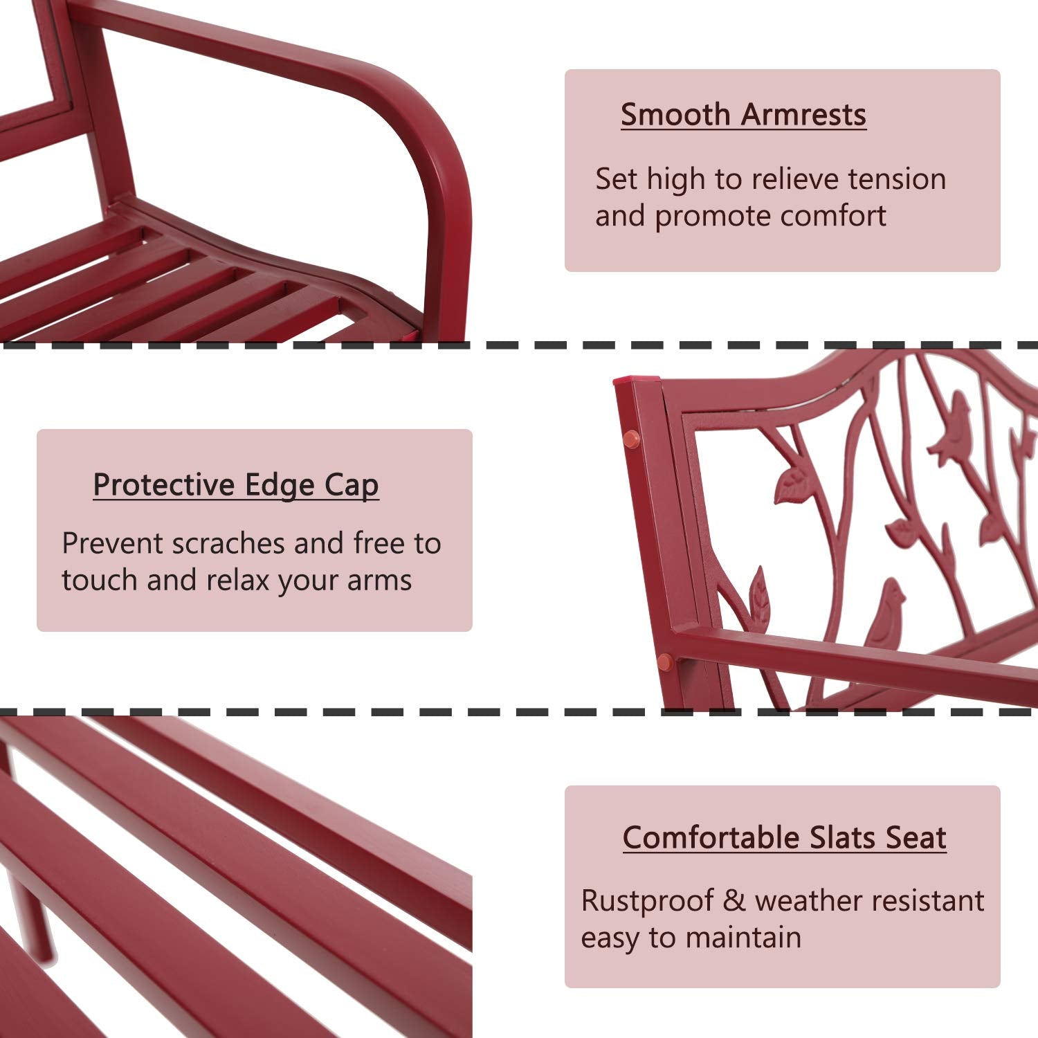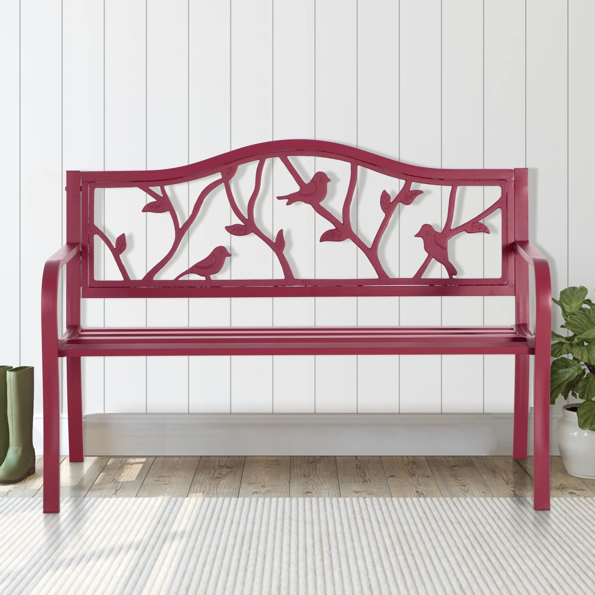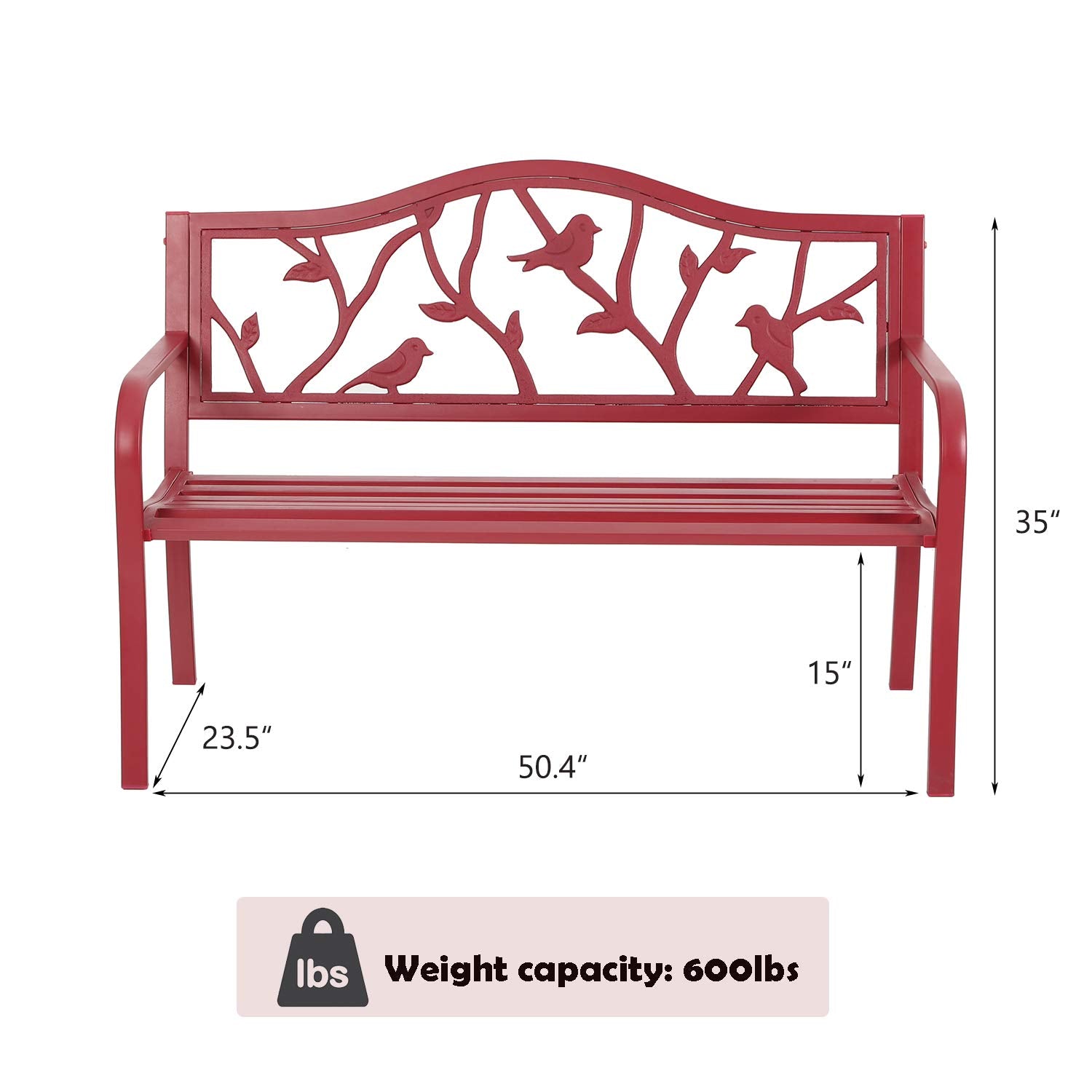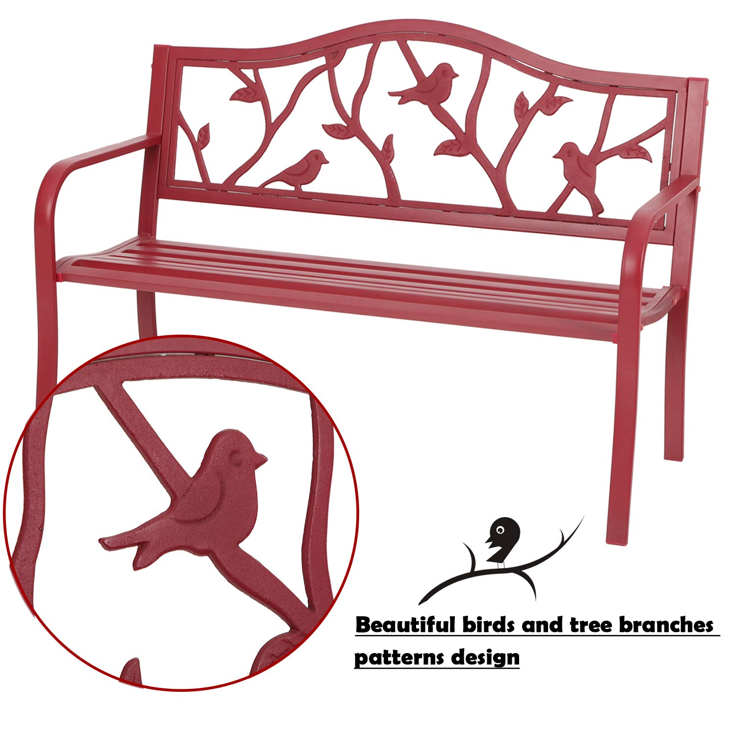 50" Outdoor Garden Bench,Steel Metal Frame Park Bench with Bird Pattern