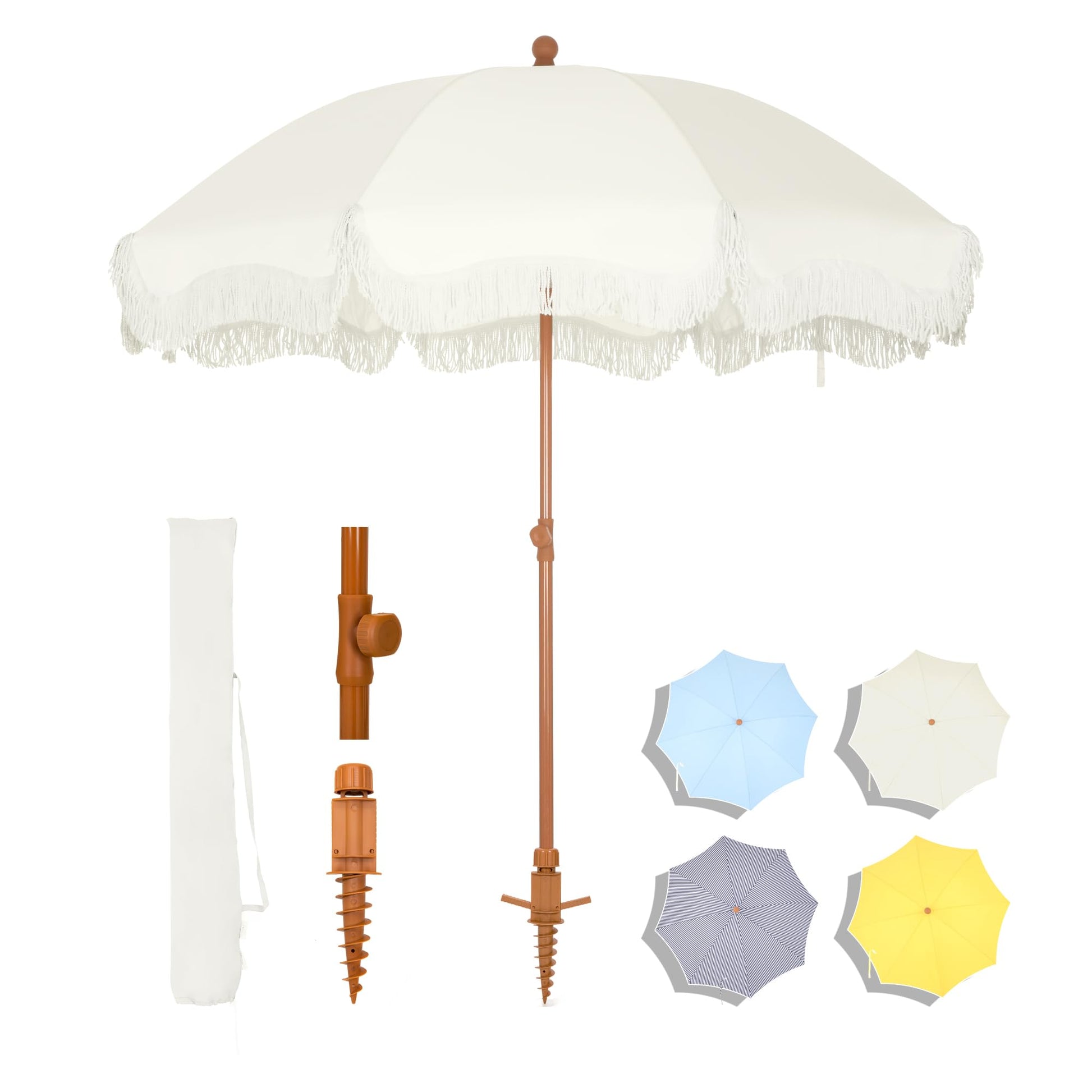 - Fringe Beach Umbrella: Tassel design is unique and elegant, enhance your summer beach time with fringe umbrellas. Instantly transforms any beach day into a luxurious vacation