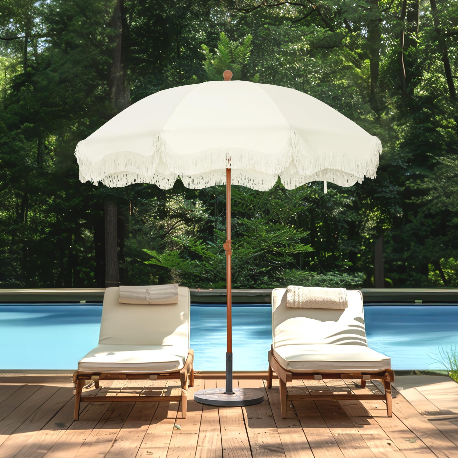 - Widely Applicable: With fringe and a natural wood grain pole, it will be a great choice for you to enjoy the summer breeze and spend your leisure time in your backyard, garden, beach or poolside. Unique design so you are sure to STAND OUT in the crowd. Close the umbrella during windy days for longer use