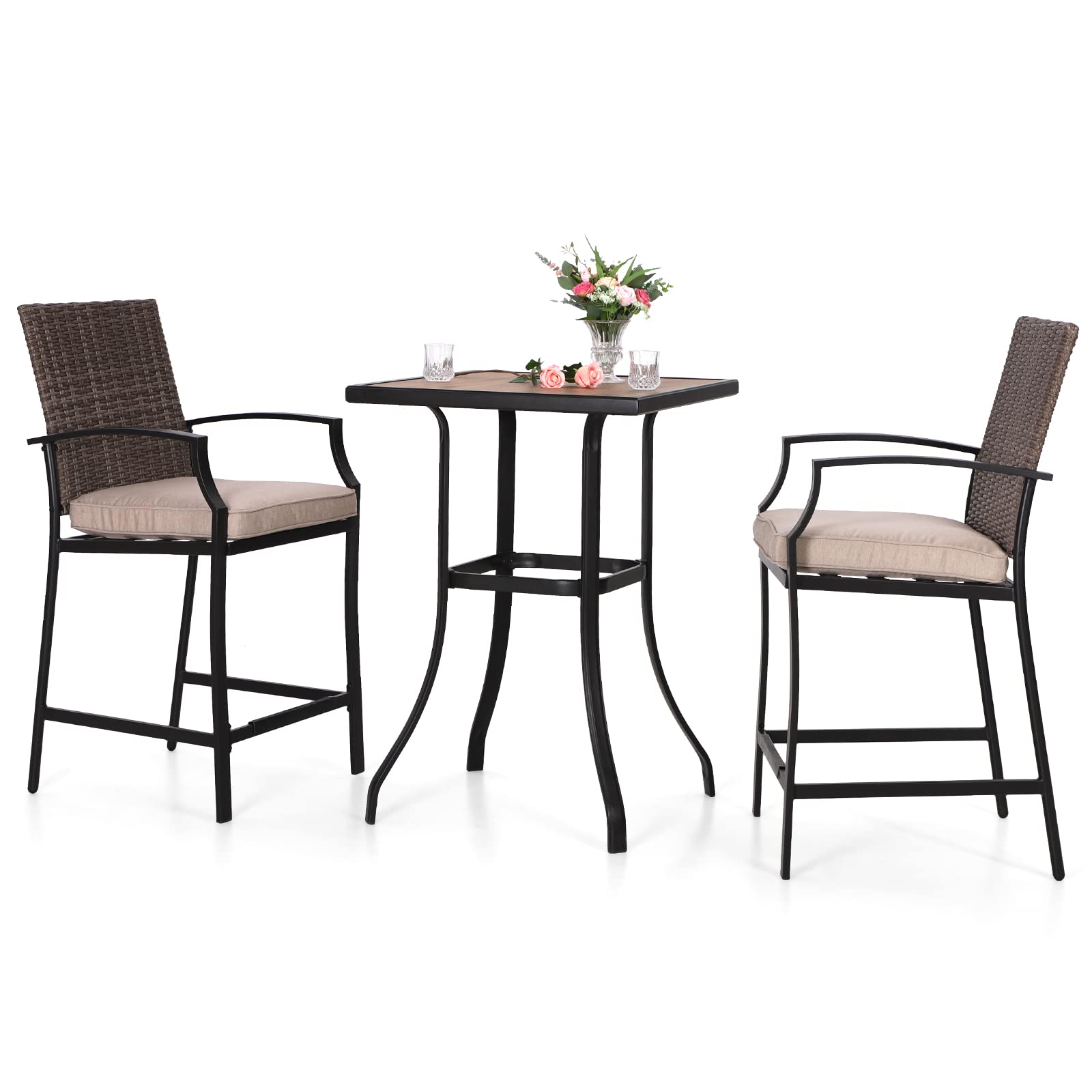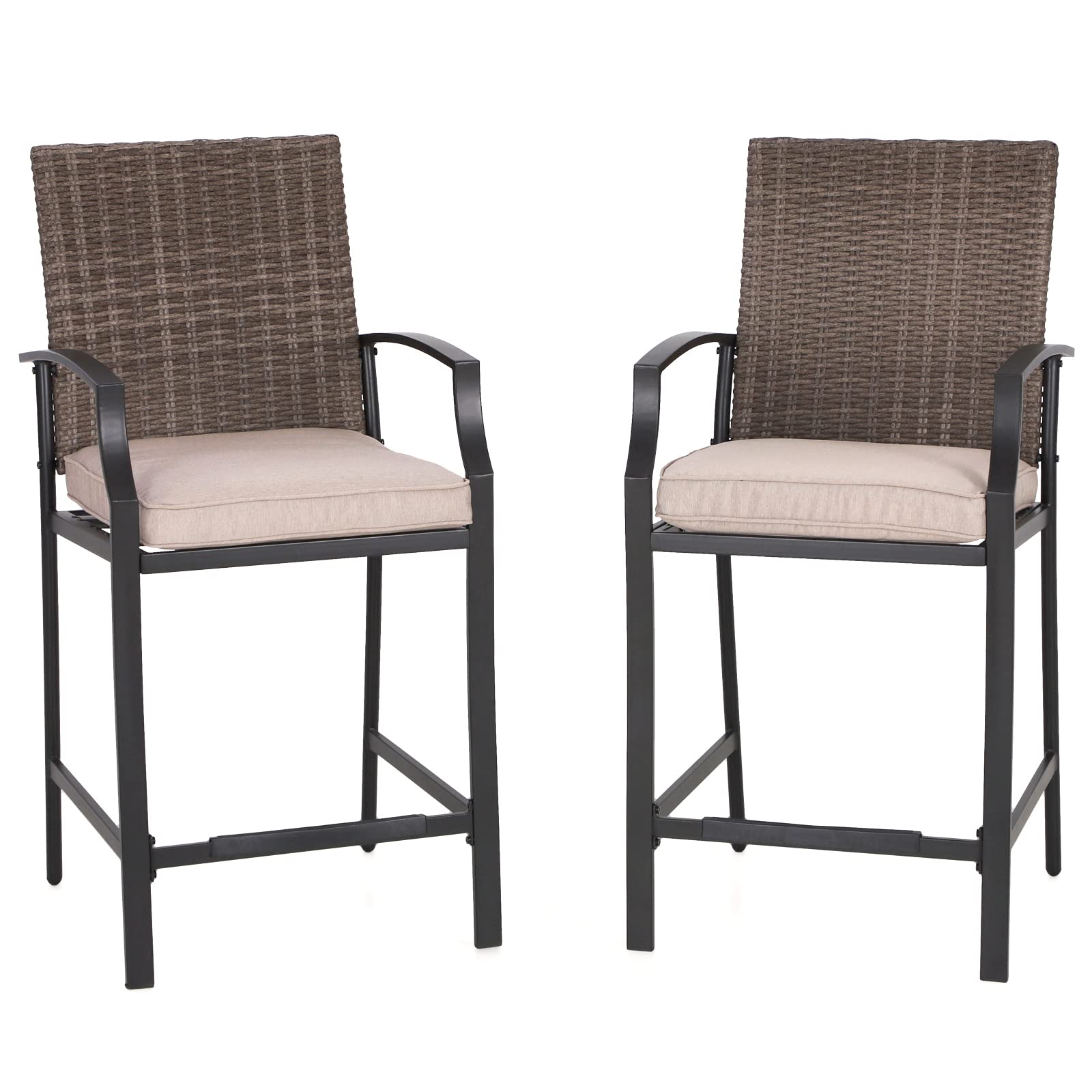 Outdoor Bar Stools Set of 2, Wicker Rattan Bar Stool with Footrest and Armrest