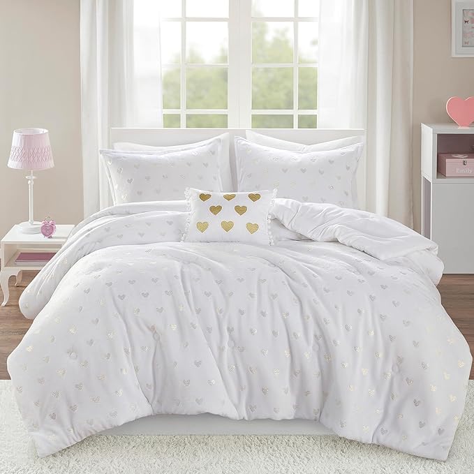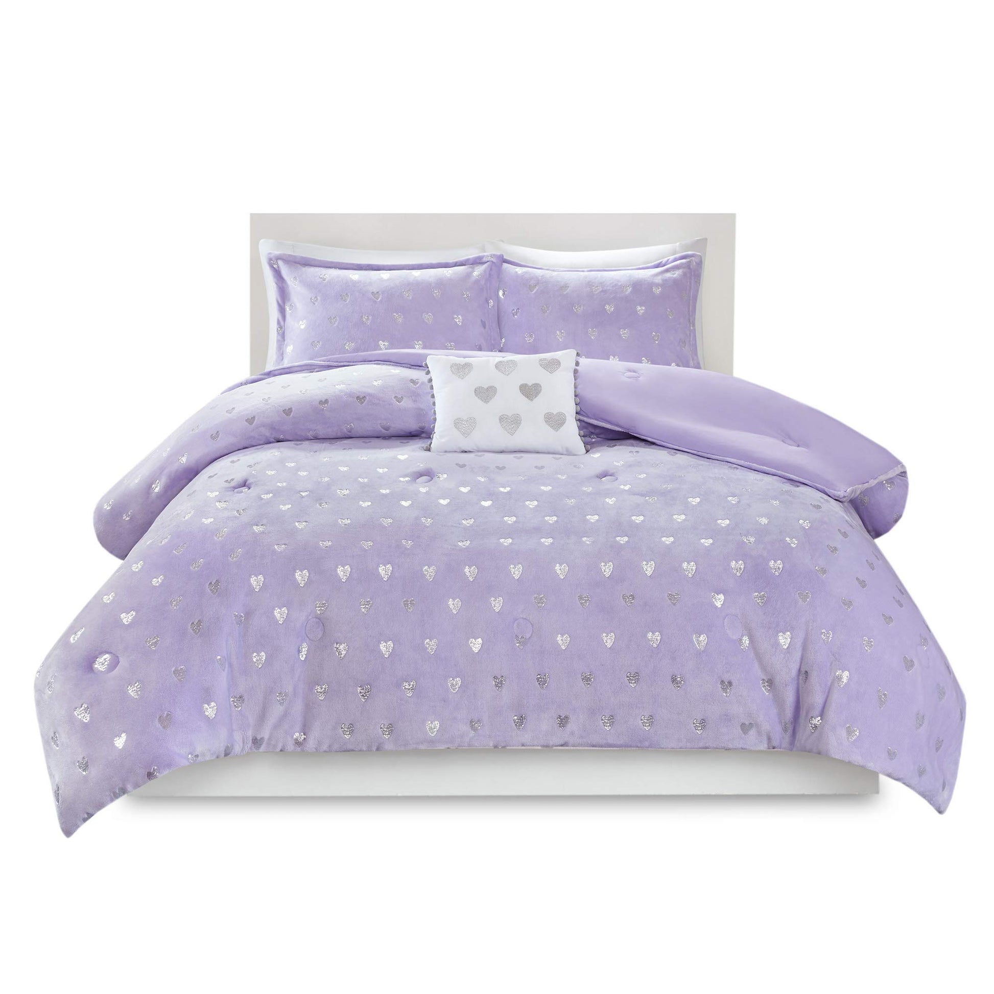 - Our Twin XL / Twin size comforter is elegant microlight, dot metallic print hearts, the reverse compliments the beauty with the brushed solid color, perfectly matched Twin comforter set for a girl's room