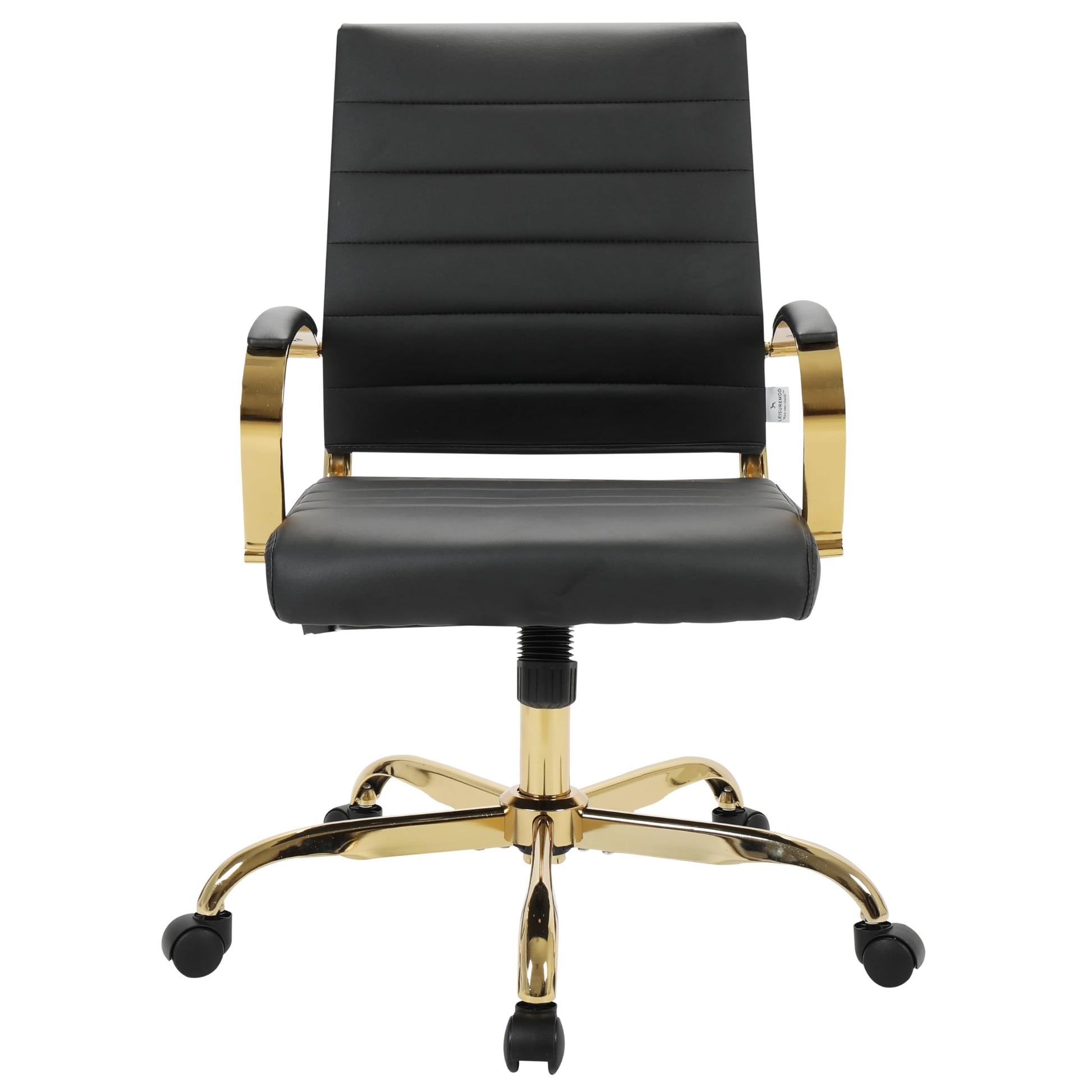Mid-Back Ergonomic Office Chair with Lumbar Support - Black Leather Gold Frame