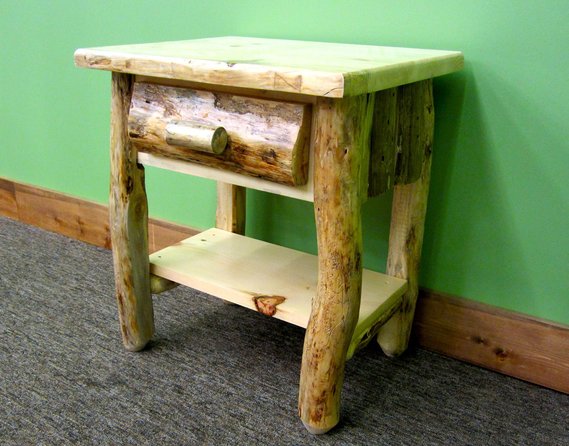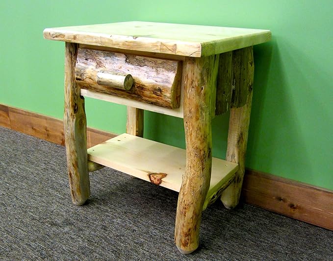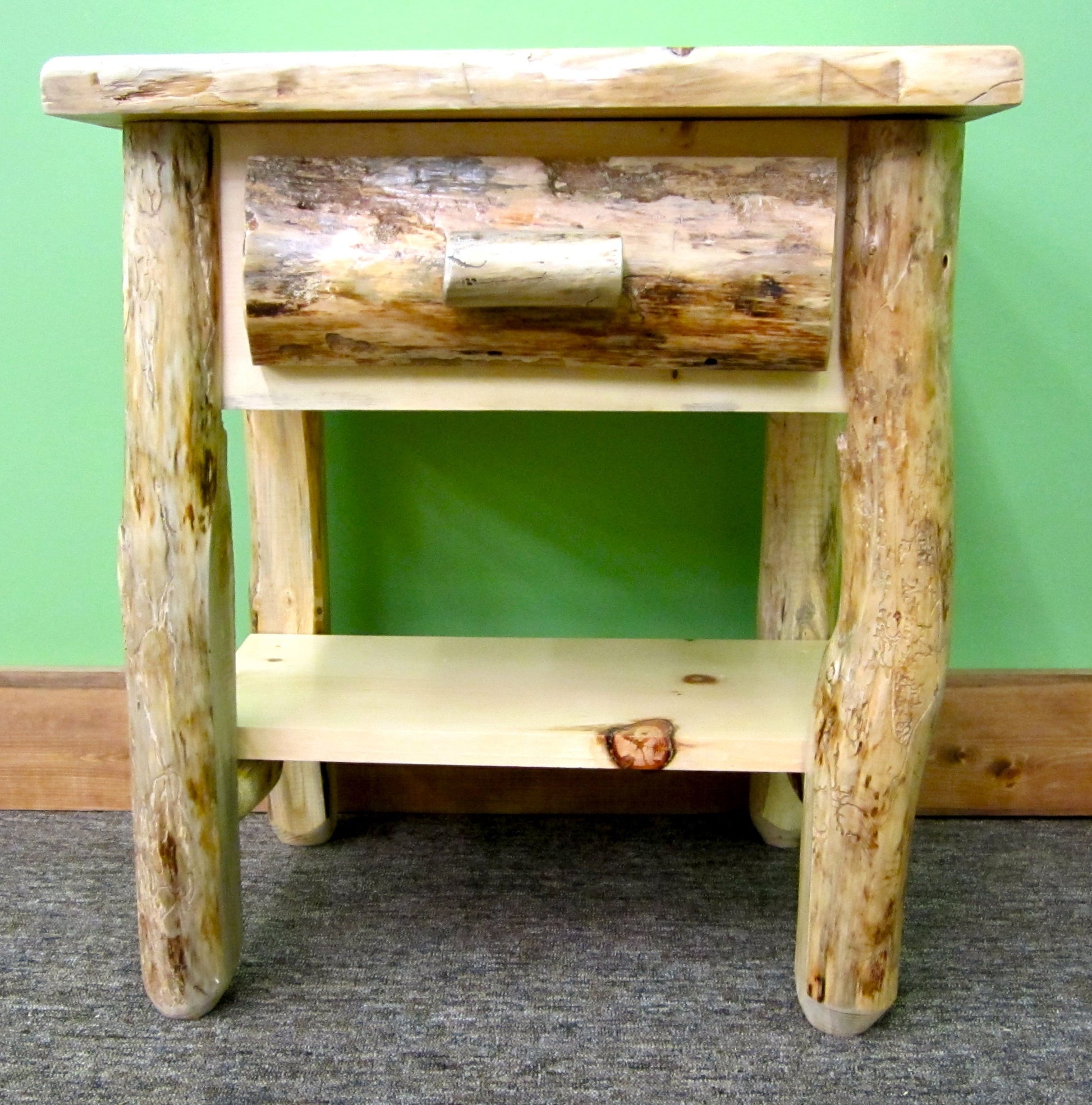 Rustic Pine Log Nightstand [1 Drawer] - Textured Light & Dark Brown/Dovetailed/Solid