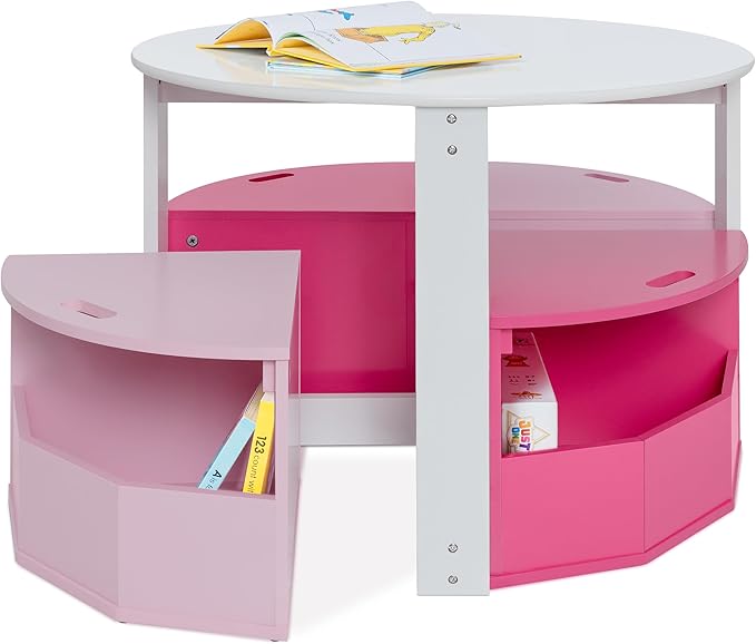 - Our toddler play table is designed with two crossbars for extra stability, ensuring it remains firm during use. Its round tabletop removes sharp edges, making it safe for children. This kids study table glossy finish allows for easy cleaning just wipe it with a cloth or spray cleanser. Constructed from durable MDF wood, both the table and chairs are built to last.