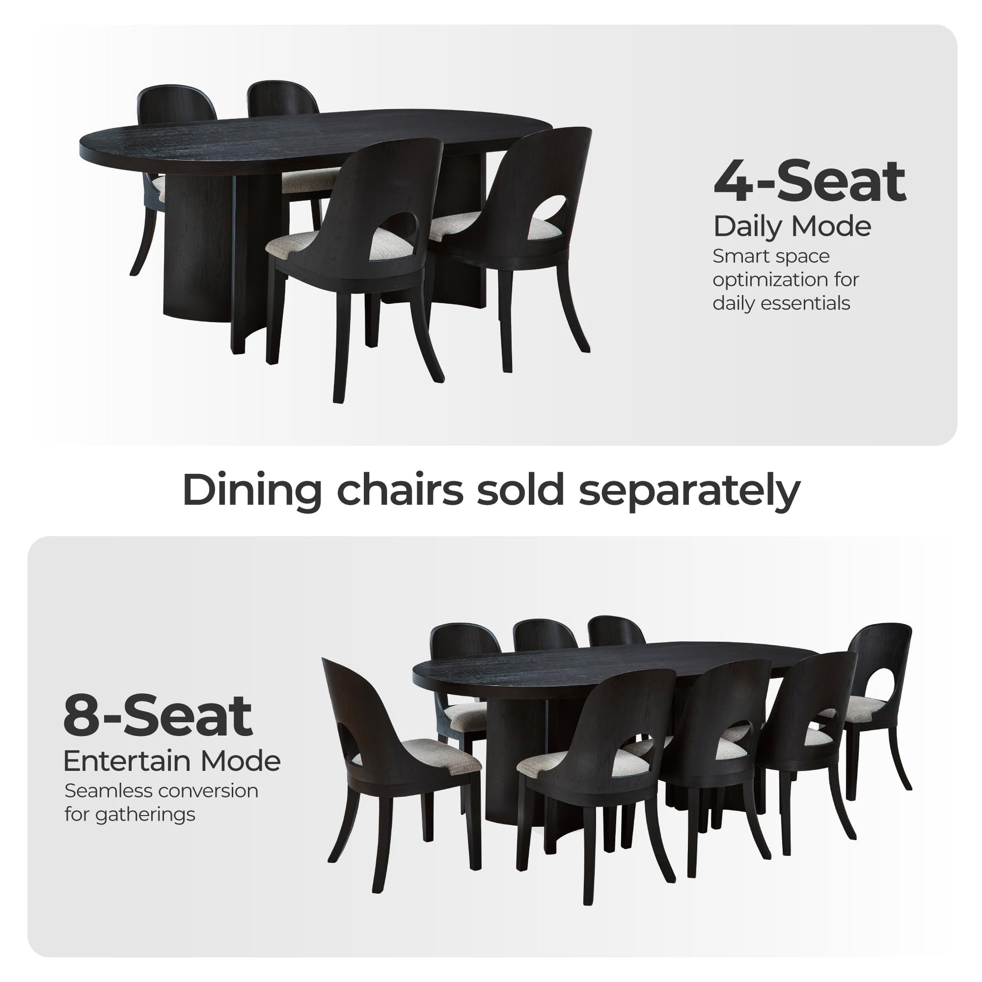 The clean-lined silhouette and sophisticated black finish create a bold statement piece that anchors your dining room with timeless elegance. Built with premium materials and expert craftsmanship, this table delivers both durability and style that will serve your home for years to come.