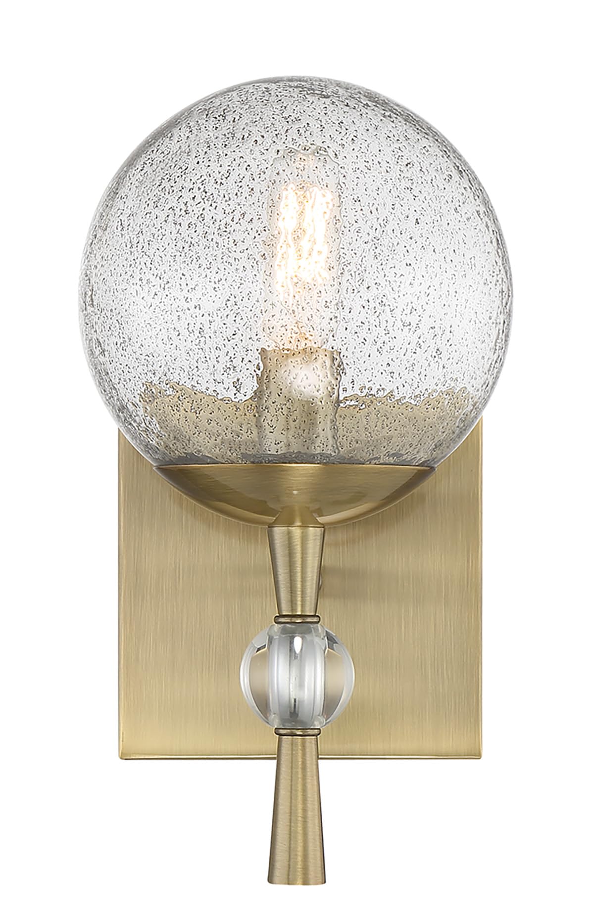 - DETAILS: Constructed of Steel, Glass and Crystal with Oxidized Aged Brass Finish, Includes Clear Volcanic Glass Shade
