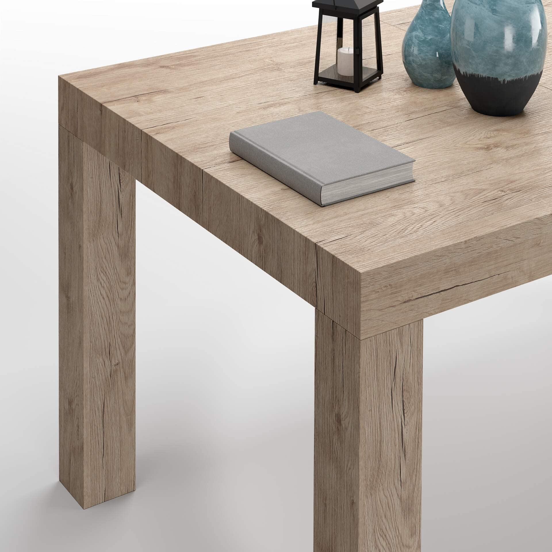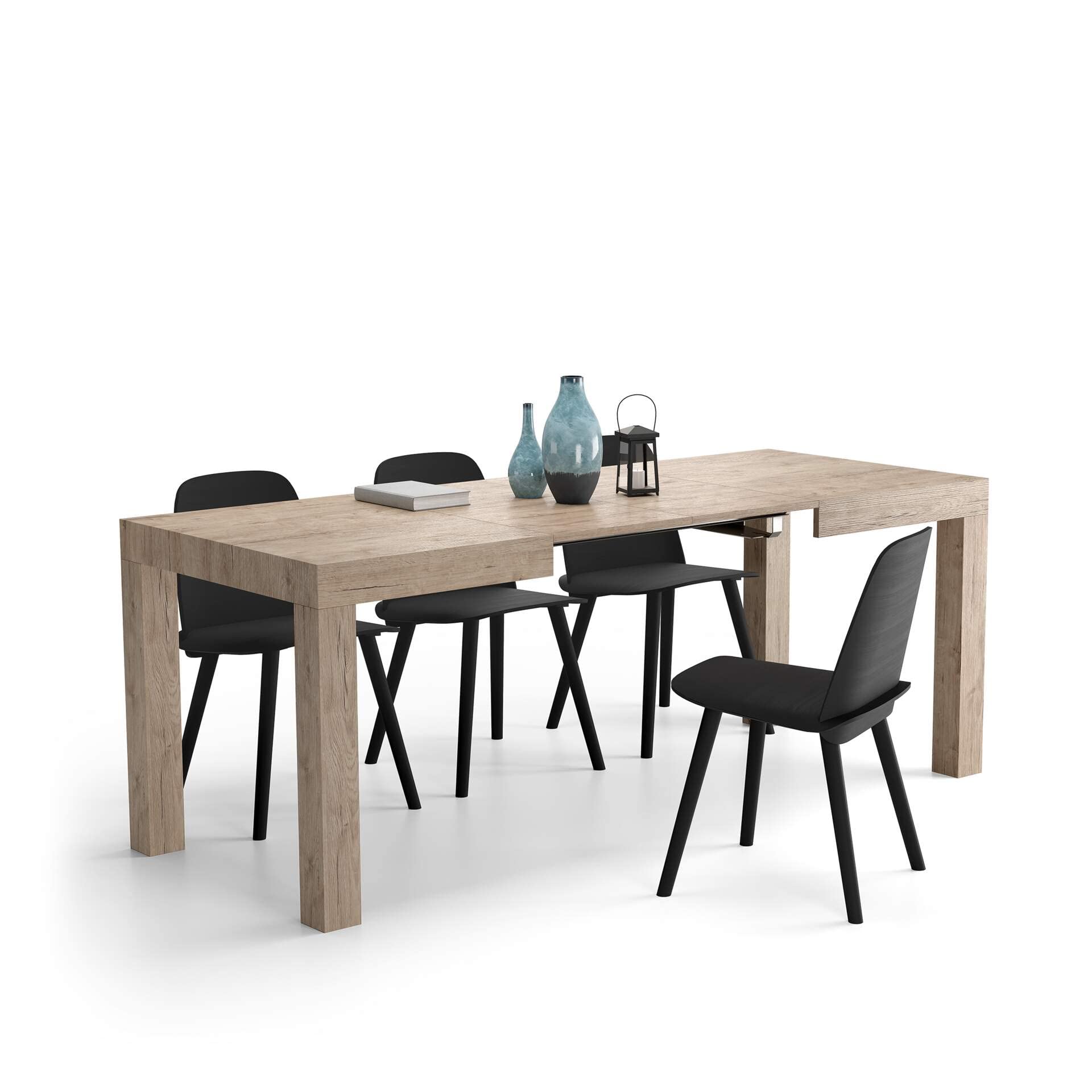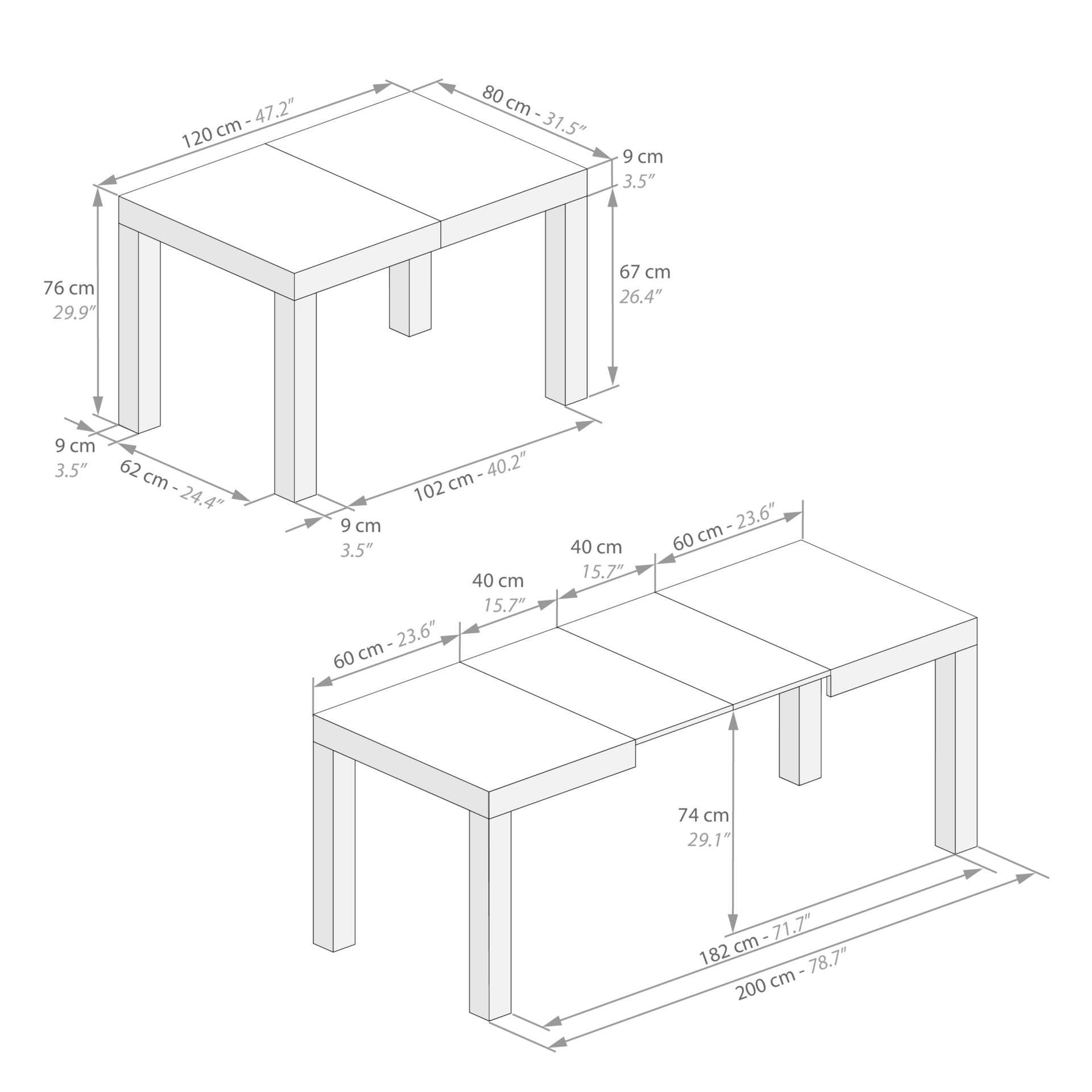 - SPACE-SAVING DESIGN: The First Oak extension leaves can be conveniently stored inside the table when not in use. You can use the number of extension leaves you want depending on your needs. The extendable table First is made of high quality melamine laminate, while the extension system is made of galvanized metal.