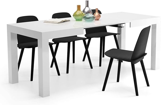 - VERSATILE DESIGN: The First extendable table features an elegant design that makes it perfect for both the kitchen and the living room. The continuity of the wood grain on the finish is NOT guaranteed (on the top and between the leaves and the top). The instructions and the necessary tool kit for assembly are included in the package.