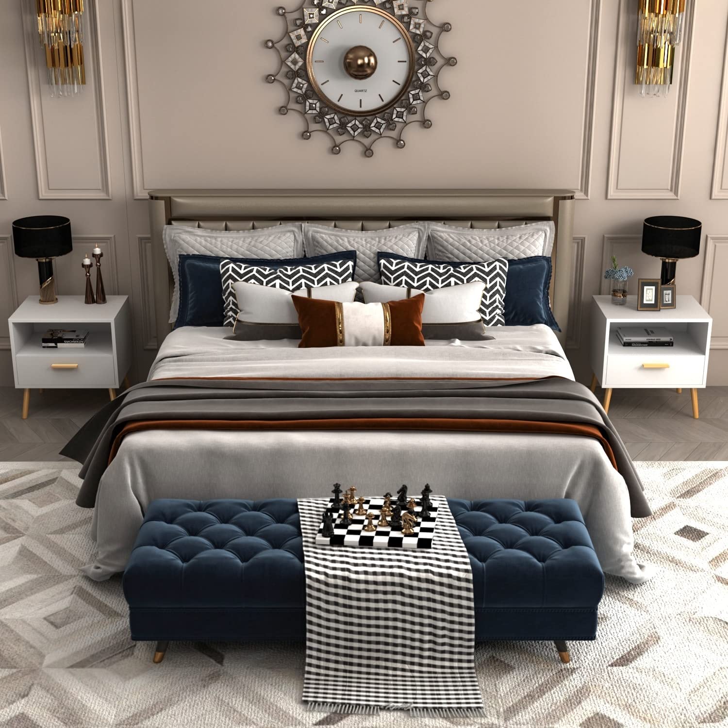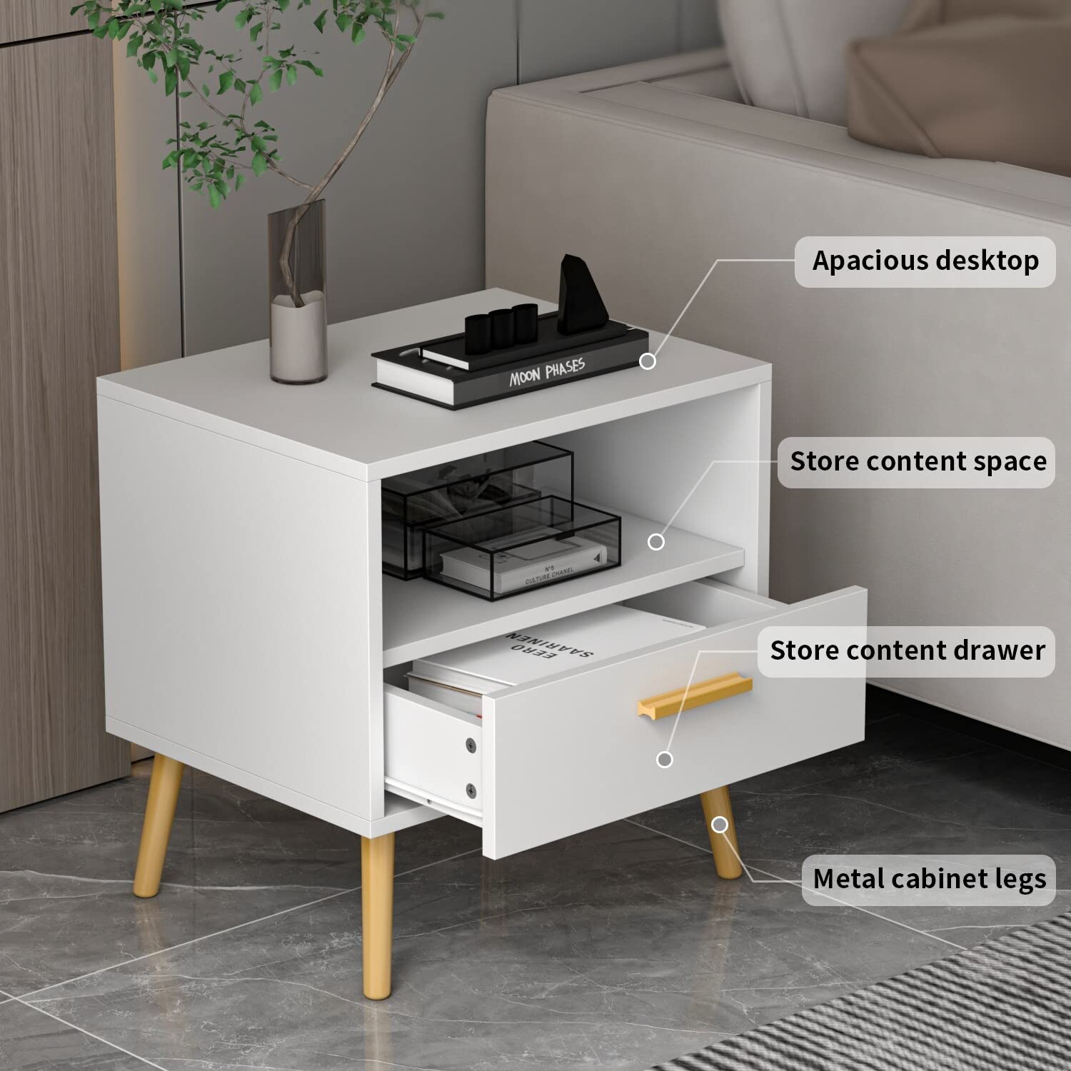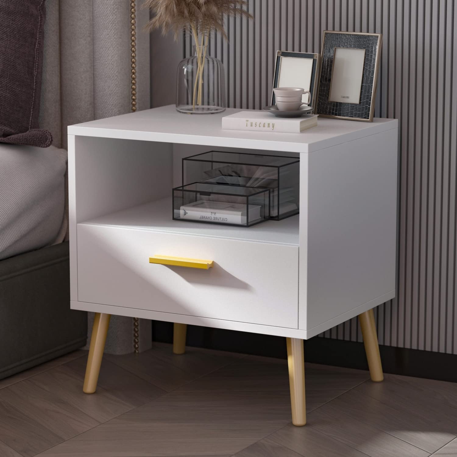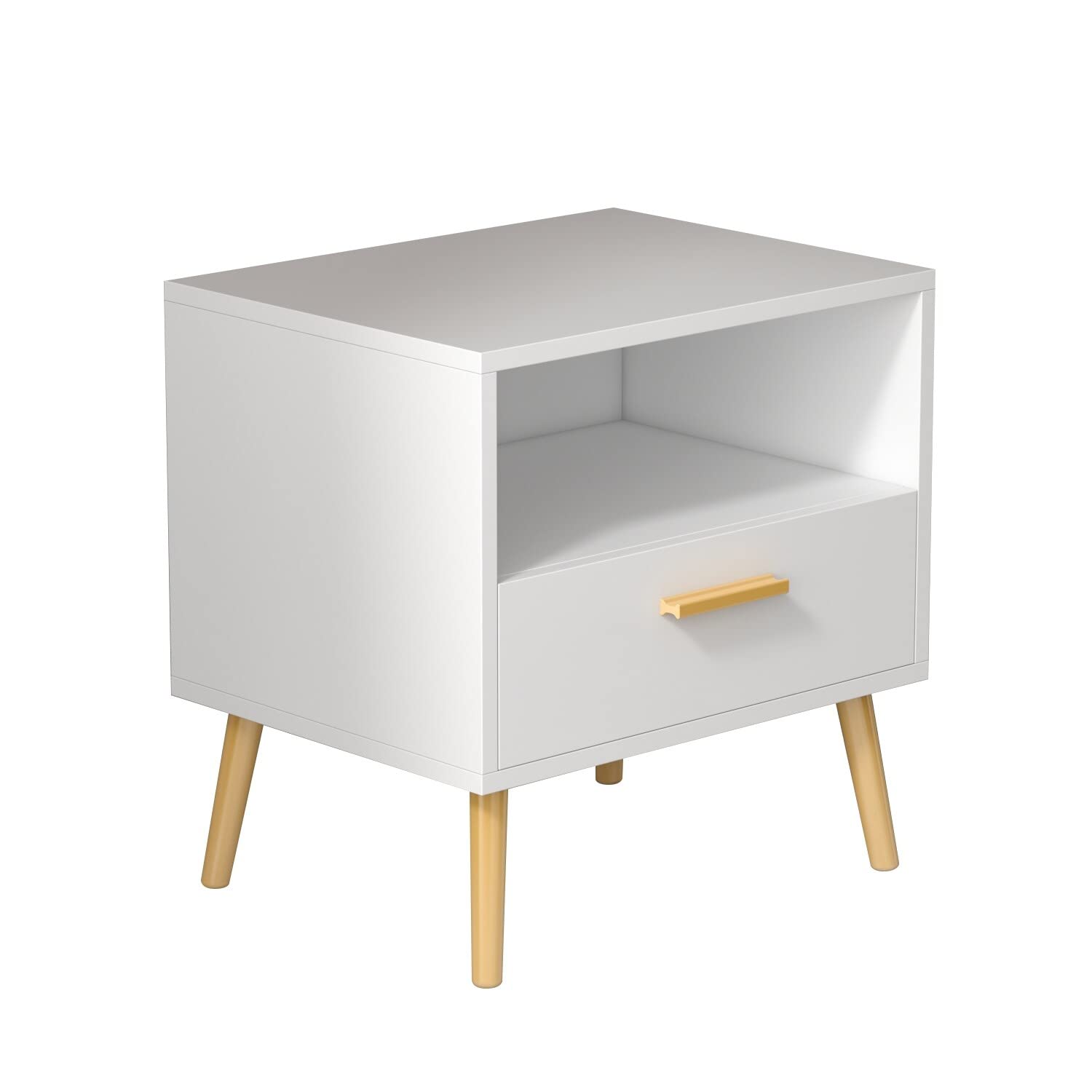 - Modern 1-drawer White Bedside Nightstand With Open Shelf French Contemporary Mdf Matte Includes Hardware Storage Area