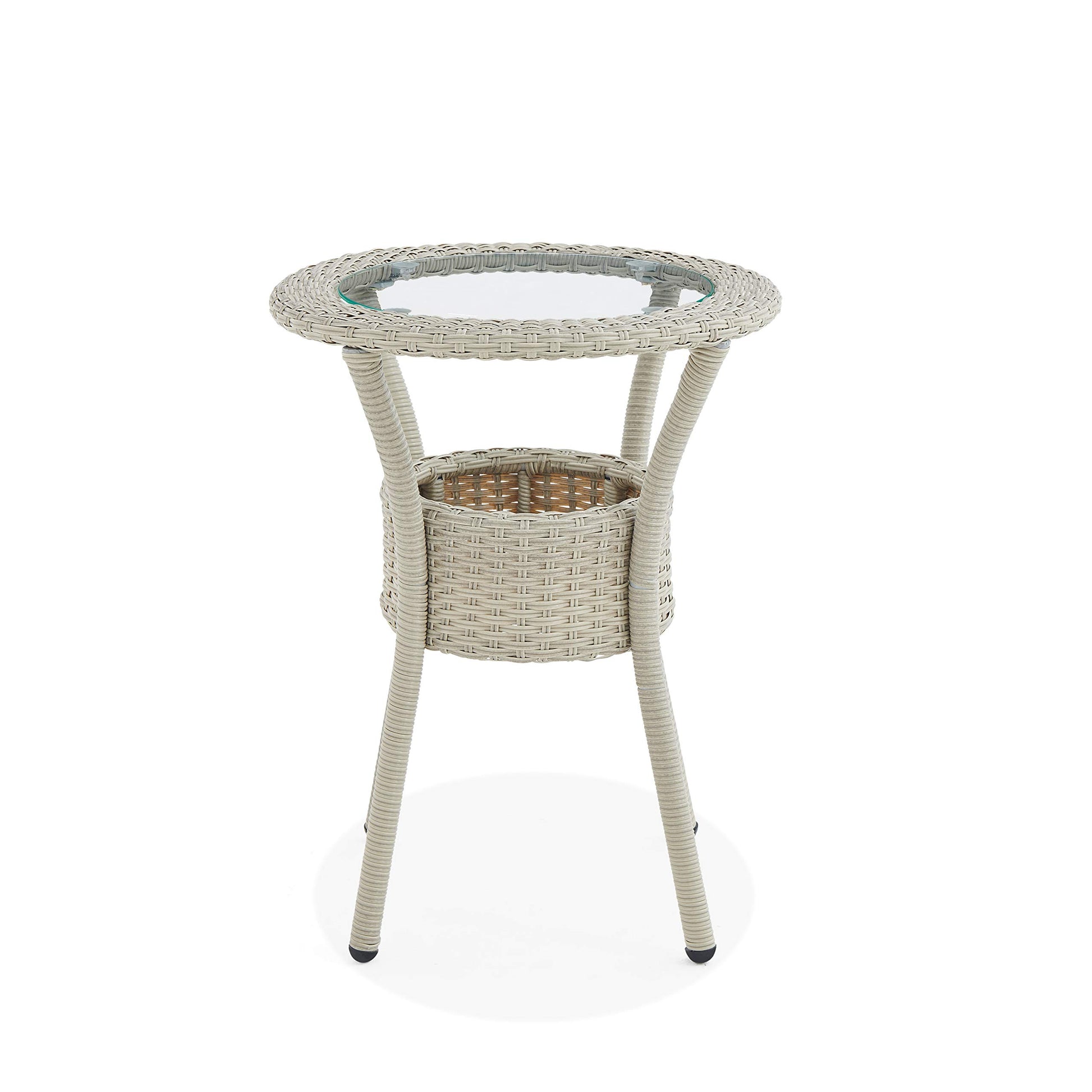 All-Weather Wicker Outdoor Round Glass-Top Accent Table with Storage