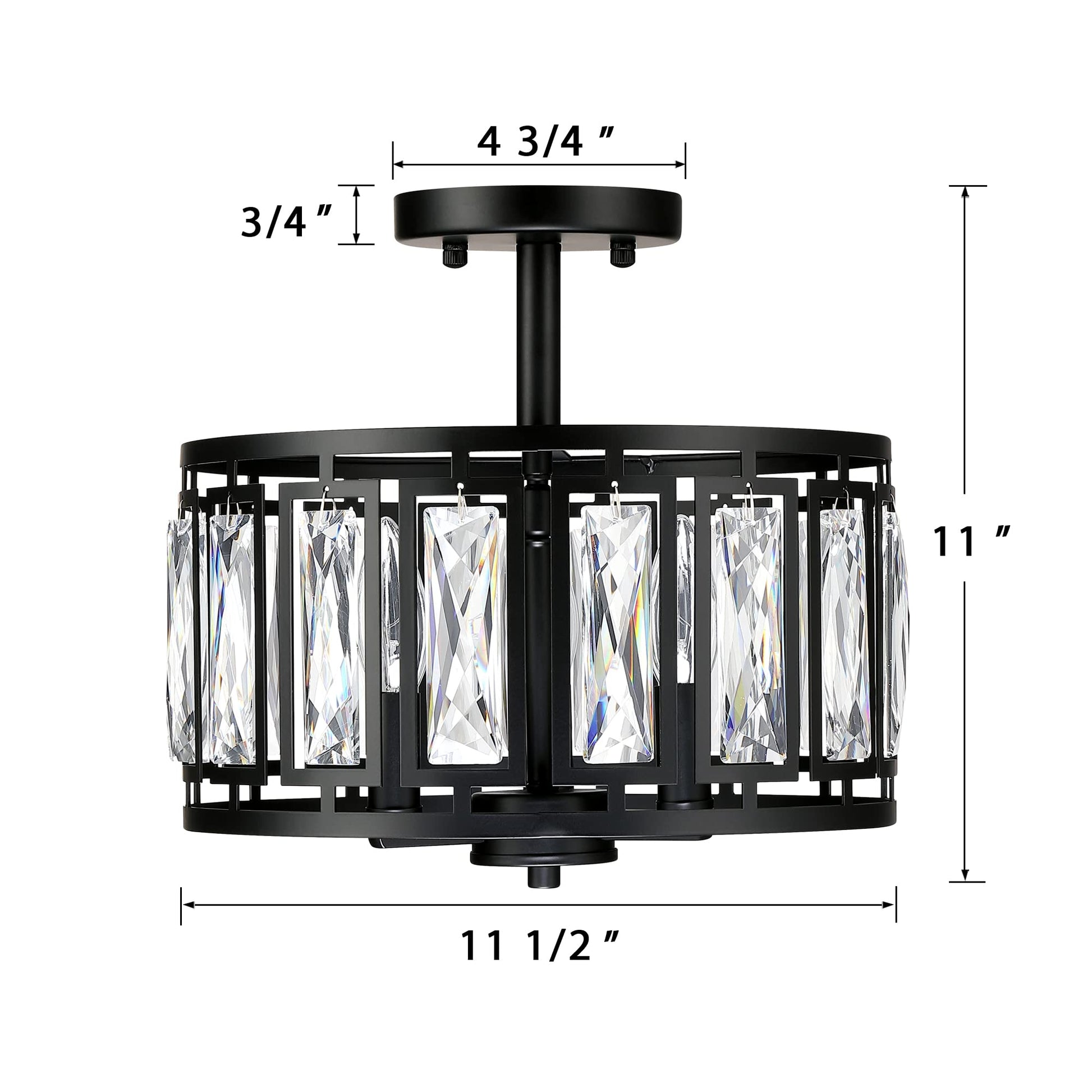 - The black semi flush mount ceiling light for bedroom is made of metal and crystals, overall black and clear. The drum shade lighting fixture with transparent crystals creates a classic modern design that will add a nice appearance and gorgeous illumination to your space.