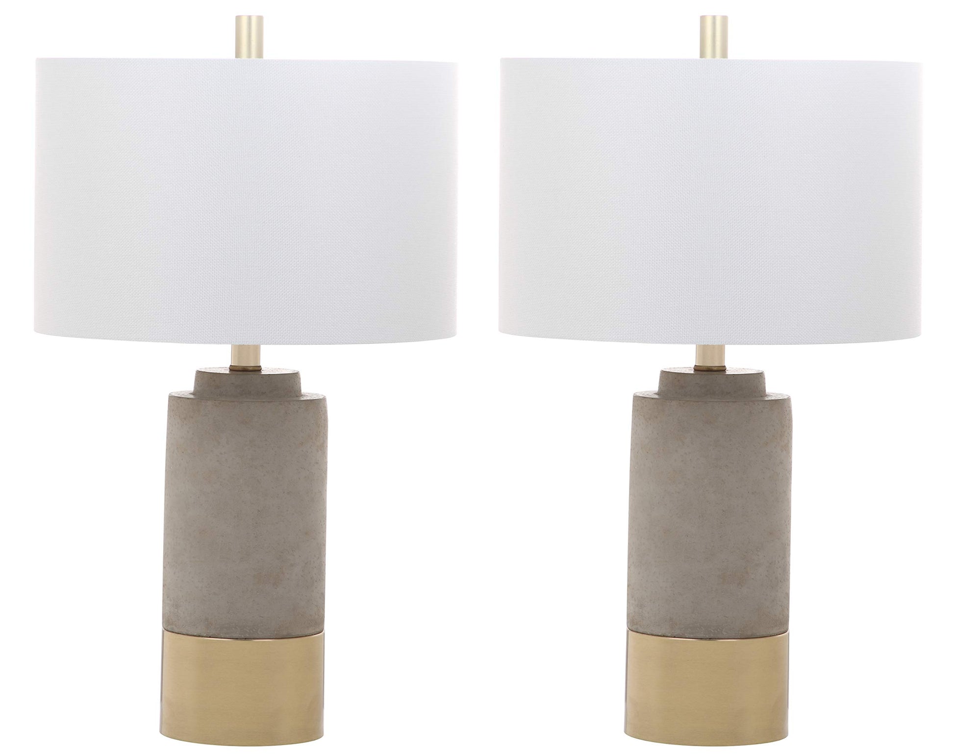 Modern Grey Concrete Table Lamp Set of 2 with Gold Accents
