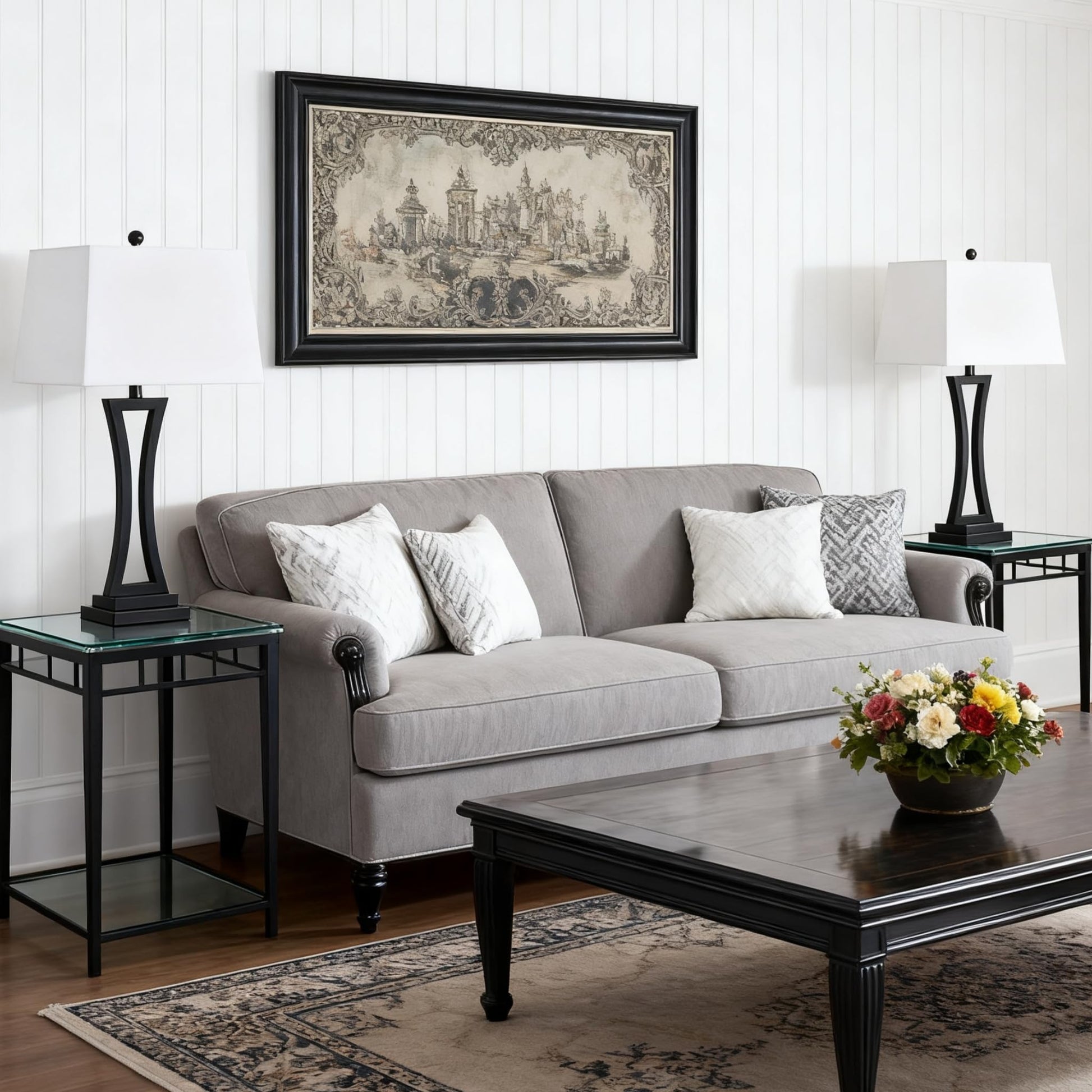 Elevate your living space with this sophisticated set of modern table lamps, designed to deliver both style and functionality. Featuring a sleek black finish and crisp white rectangular shades, these 30.75-inch tall lamps provide versatile 3-way dimmable lighting to create the perfect ambiance for any occasion.