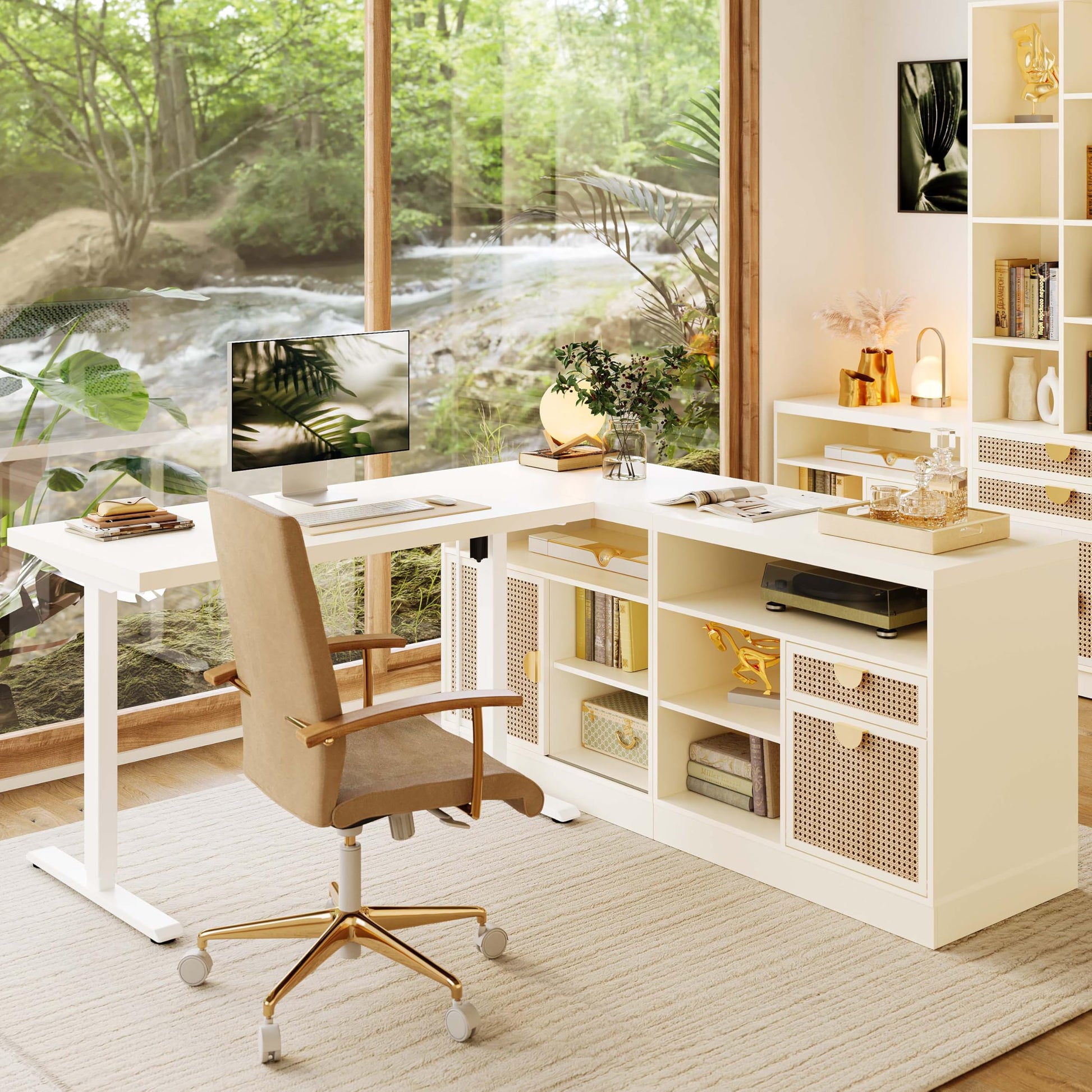67" Standing Desk with 2 Storage Cabinet, AC/USB, 1.18" Desktop, L Shaped Height