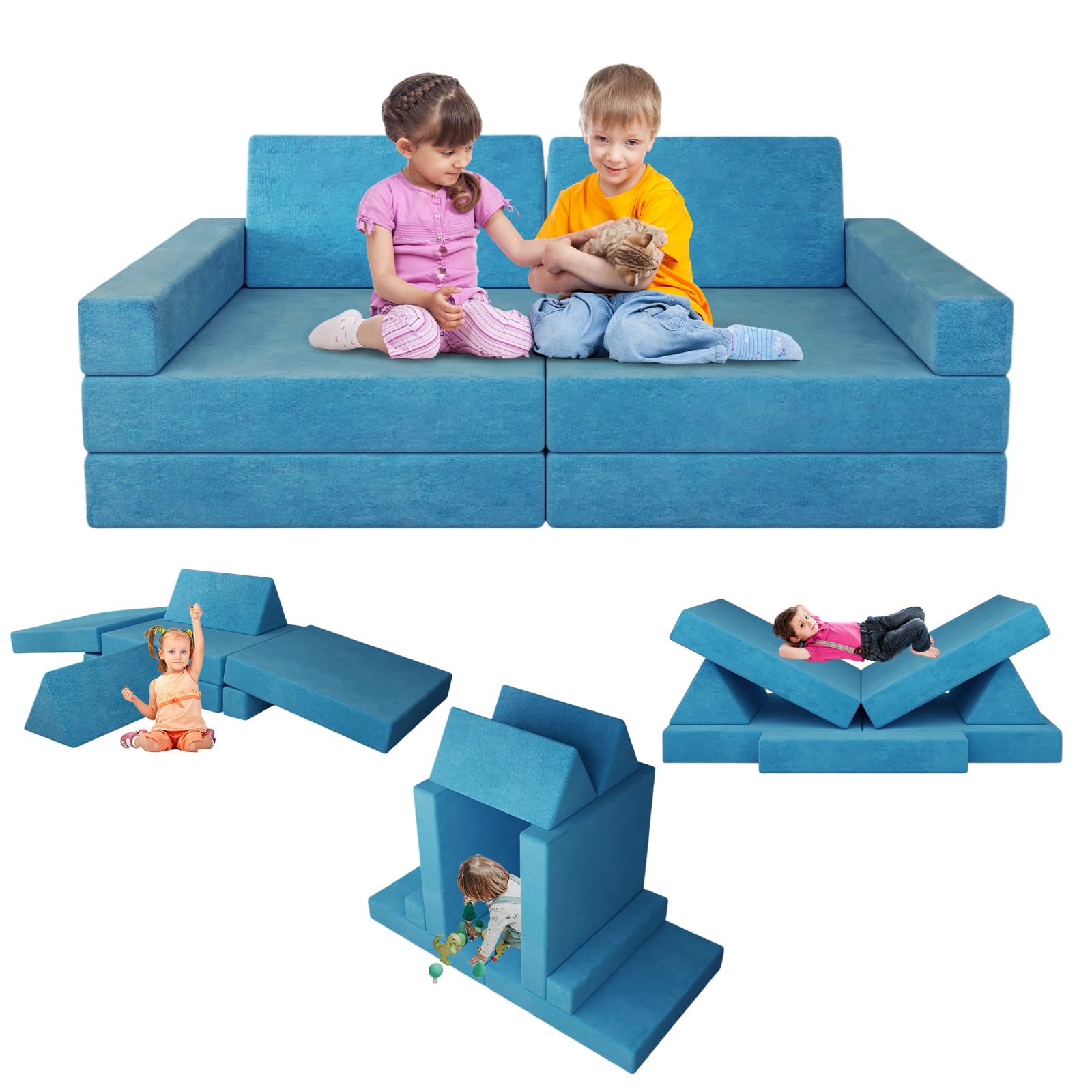 - 14 Pieces Modular Kids Sofa: In addition to a comfortable sofa, it can be easily converted into a playhouse, rocket ship, fort, tunnel, bed, etc. by using children's imagination to satisfy various needs for playing, climbing, chatting, watching TV or relaxing.