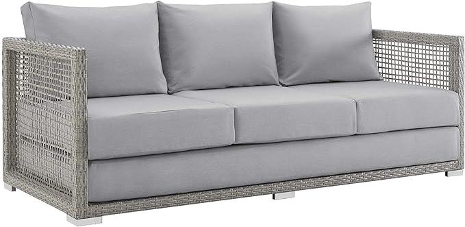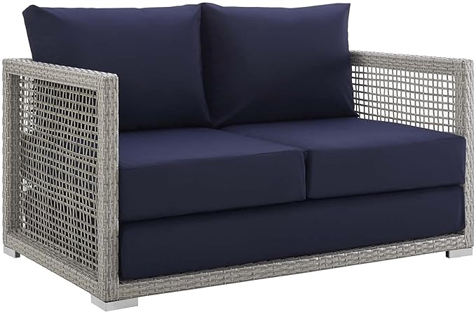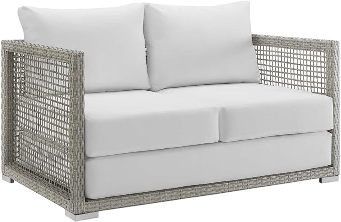 - WEATHER-RESISTANT - Featuring a powder-coated aluminum frame and a wide, deep body, this patio loveseat comes with a gray-on-gray synthetic rattan weave with UV protection for years of outdoor use