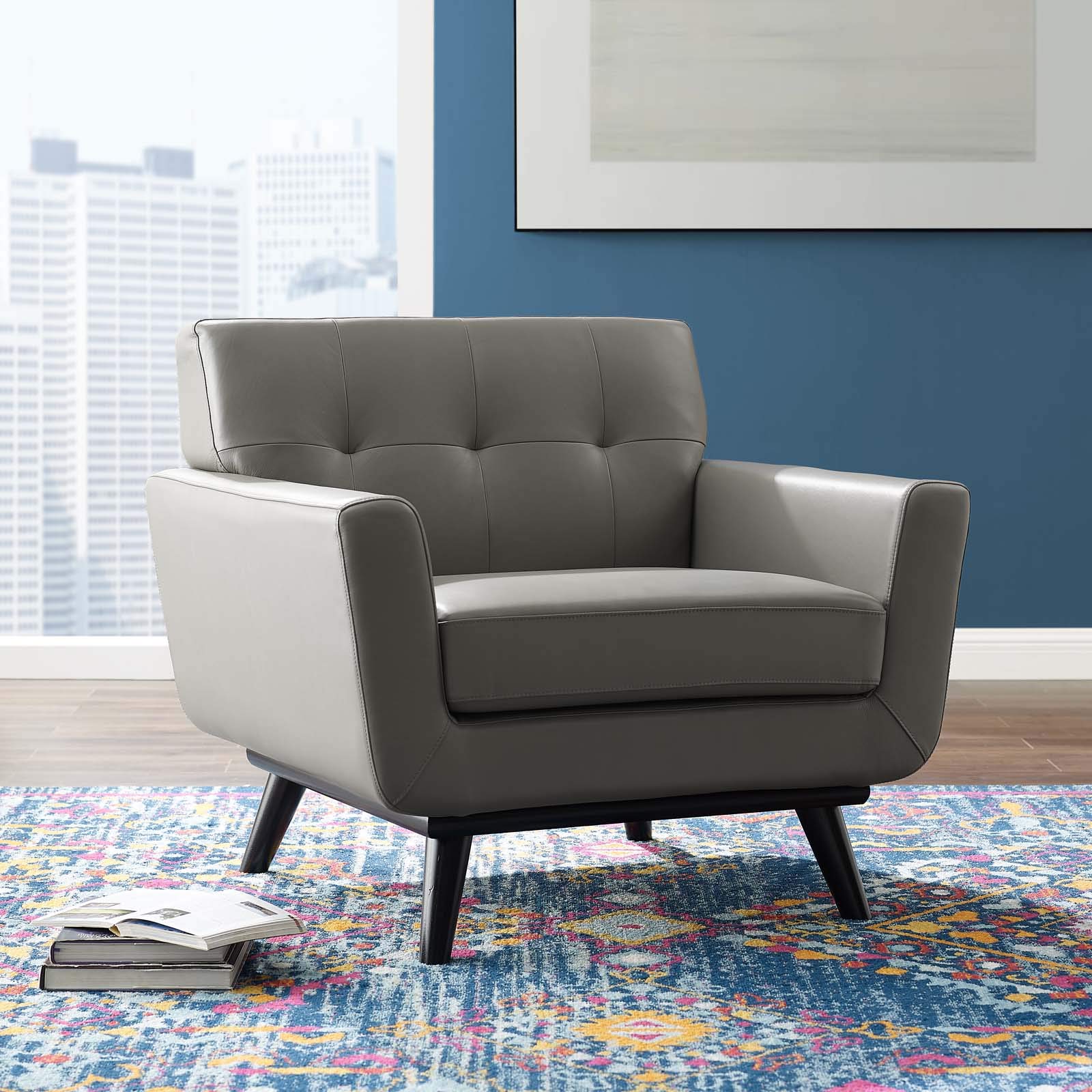 - Contemporary style the roomy Depth and Iconic look of this armchair showcase mid-century modern design. Boasting tailored Lines, this Leather armchair embodies retro intrigue and Sophistication