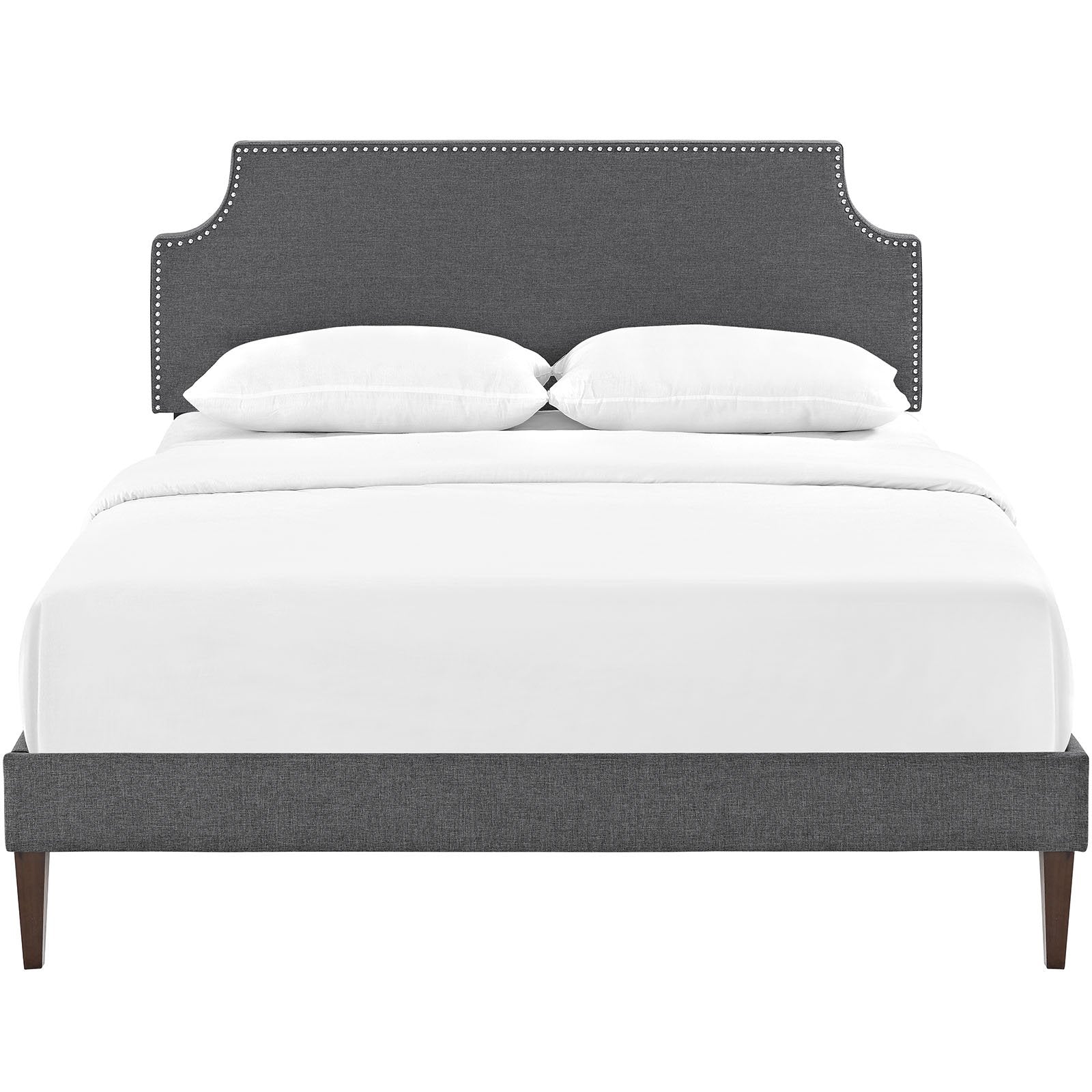 Laura Fabric Platform Bed with Squared Tapered Legs, King, Gray