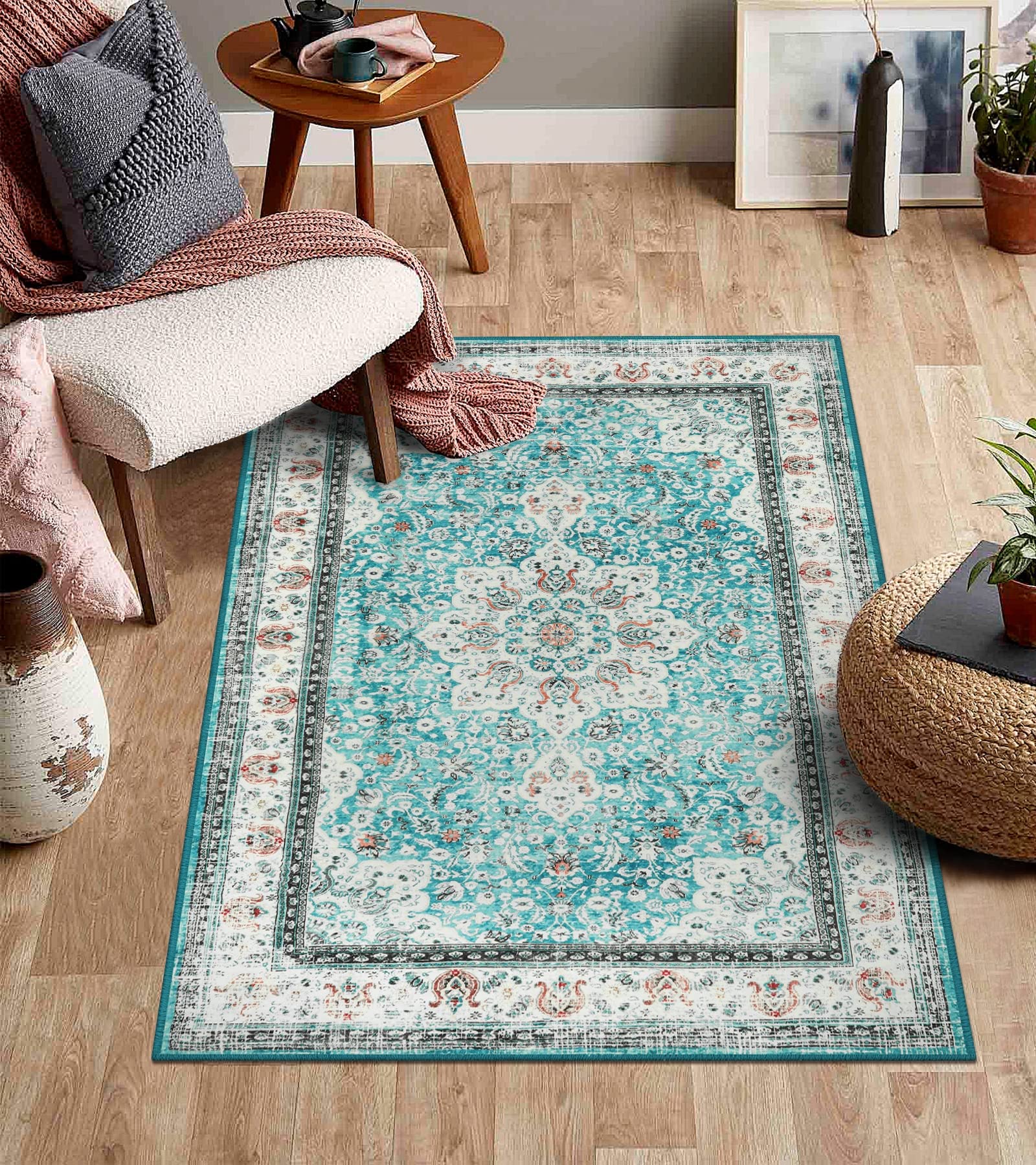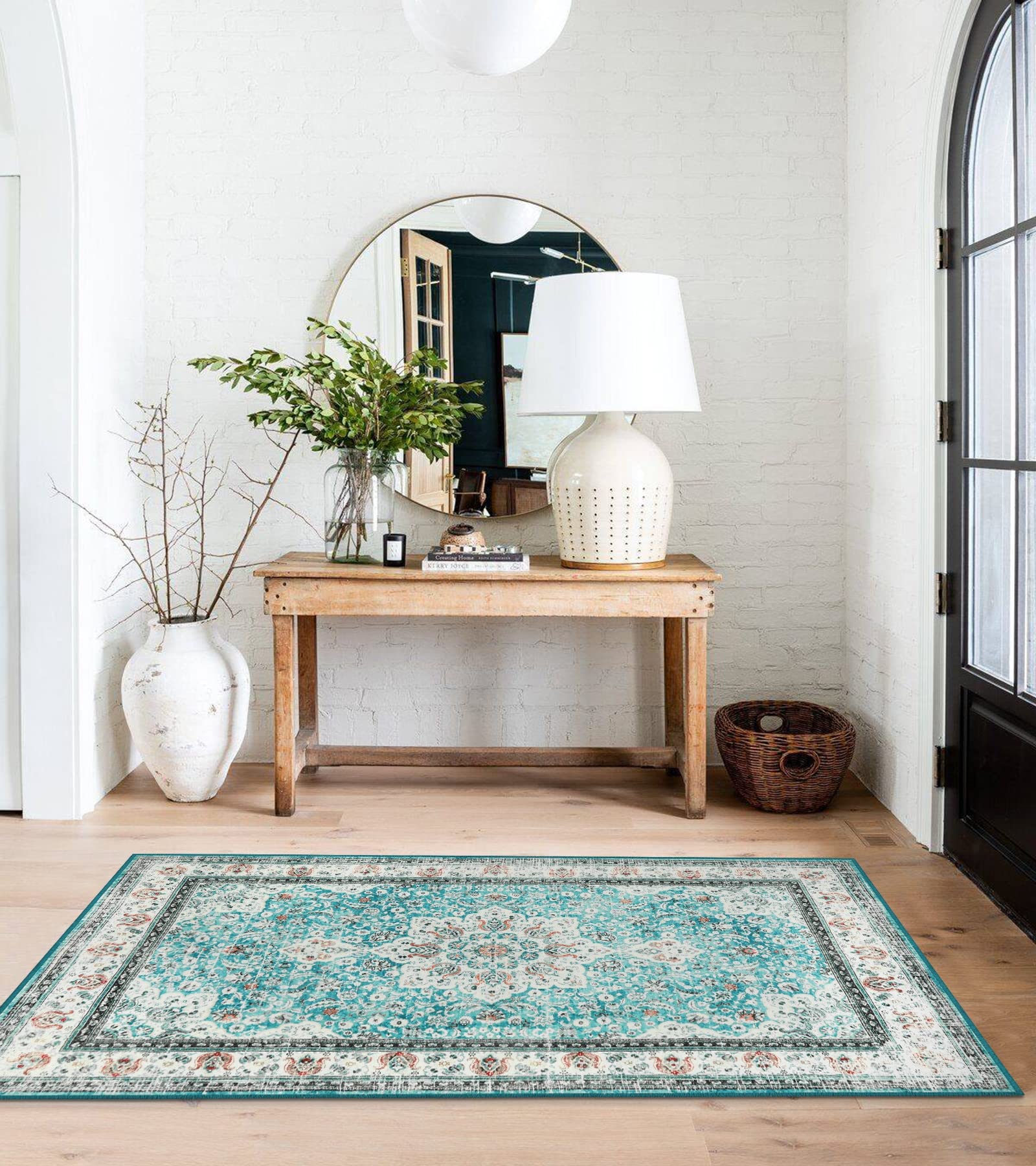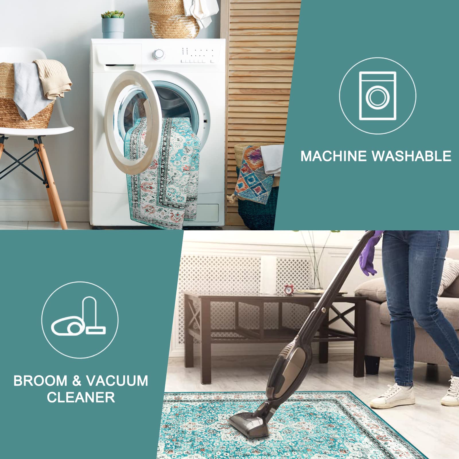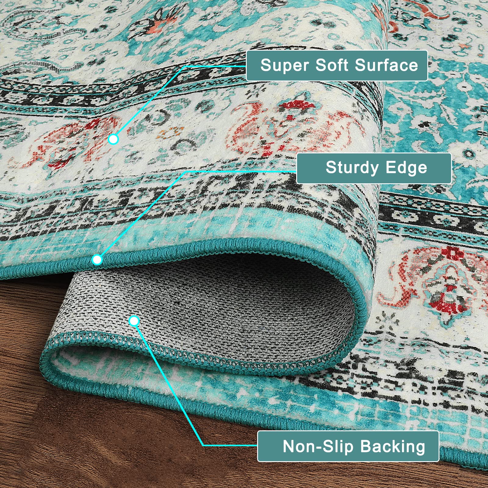 - [Foldable Soft Oriental Rug]:Washable 3x5 rug folds without leaving creases for easy seasonal storage.Chic boho and retro bedroom rug featuring gorgeous patterns printed on soft & cozy short pile for a velvety touch.The calming of blue and the renewing of green make up this teal vintage rug.
