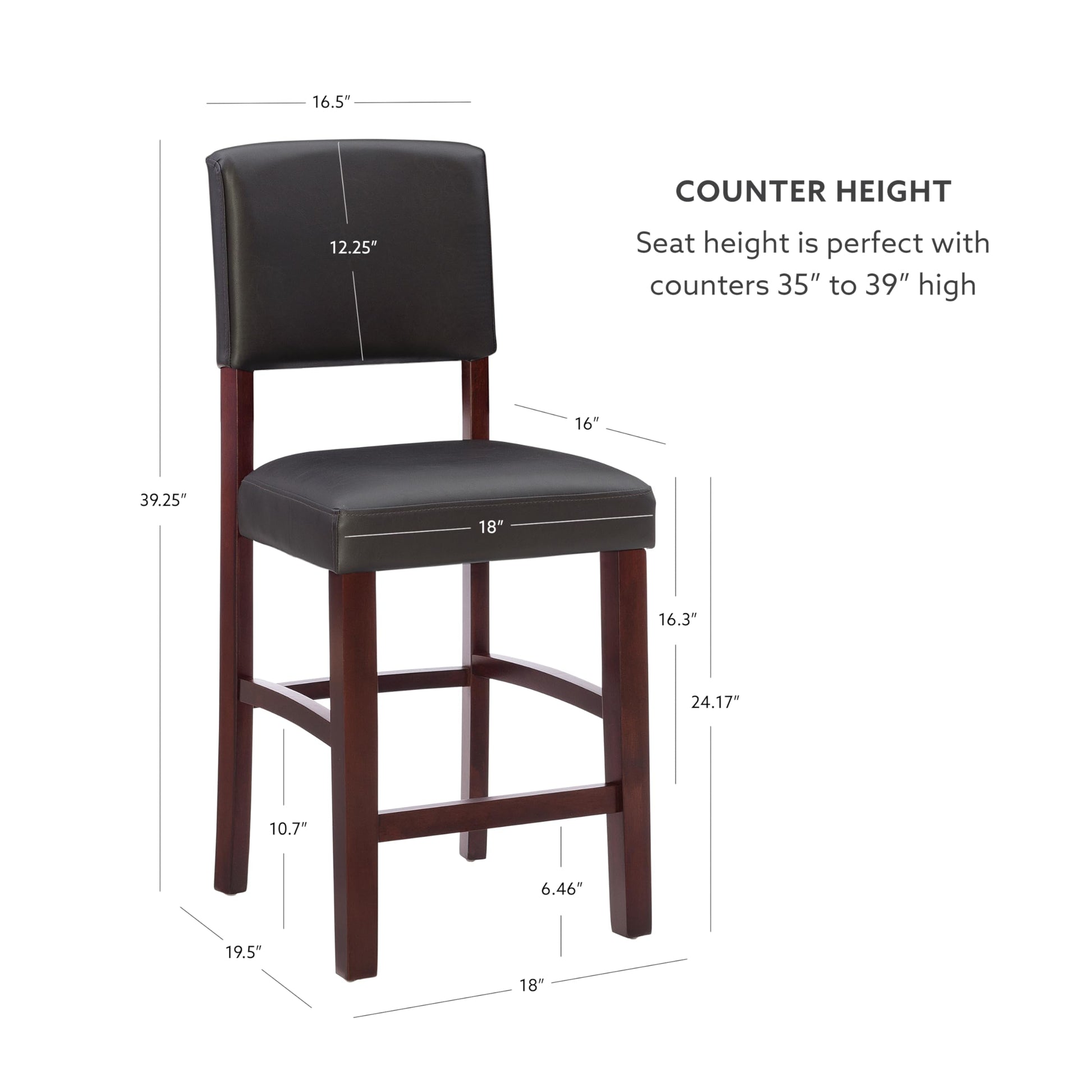 - The seat height of 24.17" pairs seamlessly with counters, kitchen islands, and pub table heights of 35" to 39" H