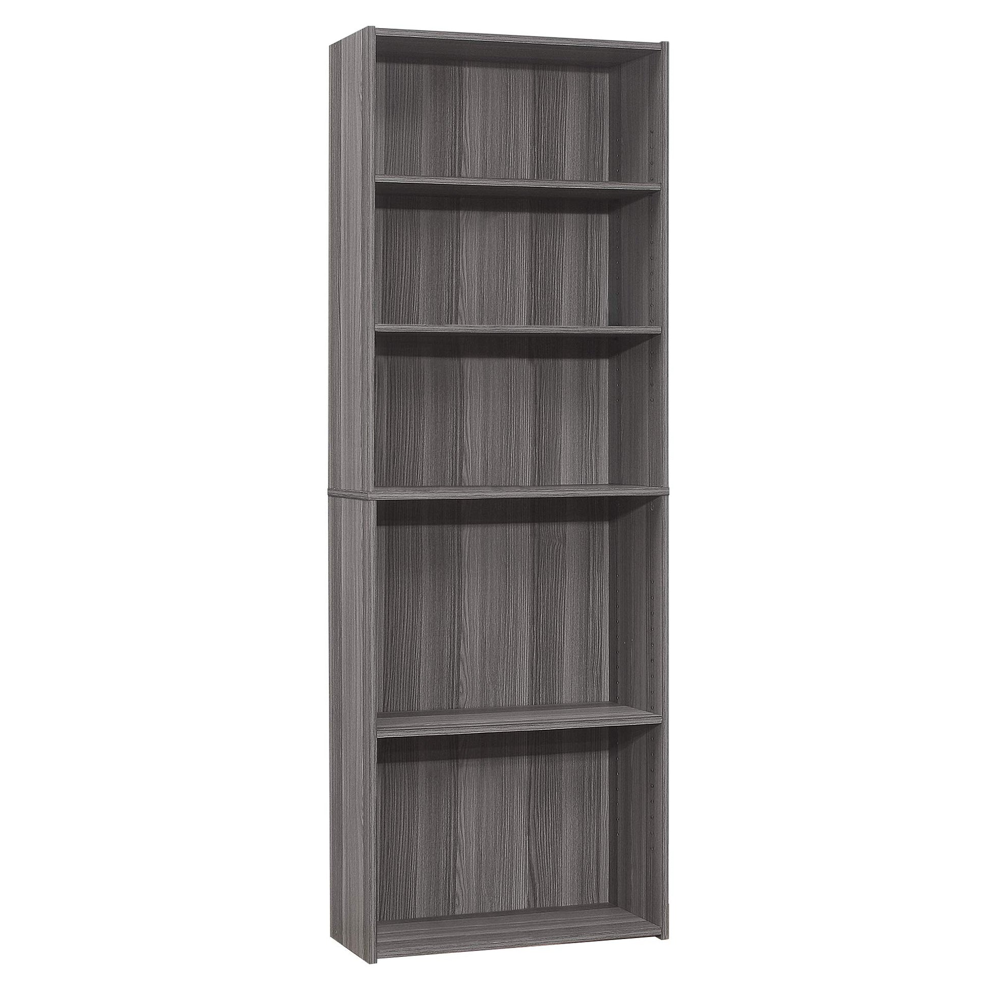 I BOOKCASE-72 H/Grey with 5 Shelves Bookcase, Gray