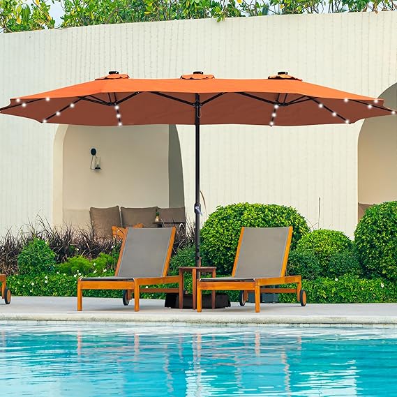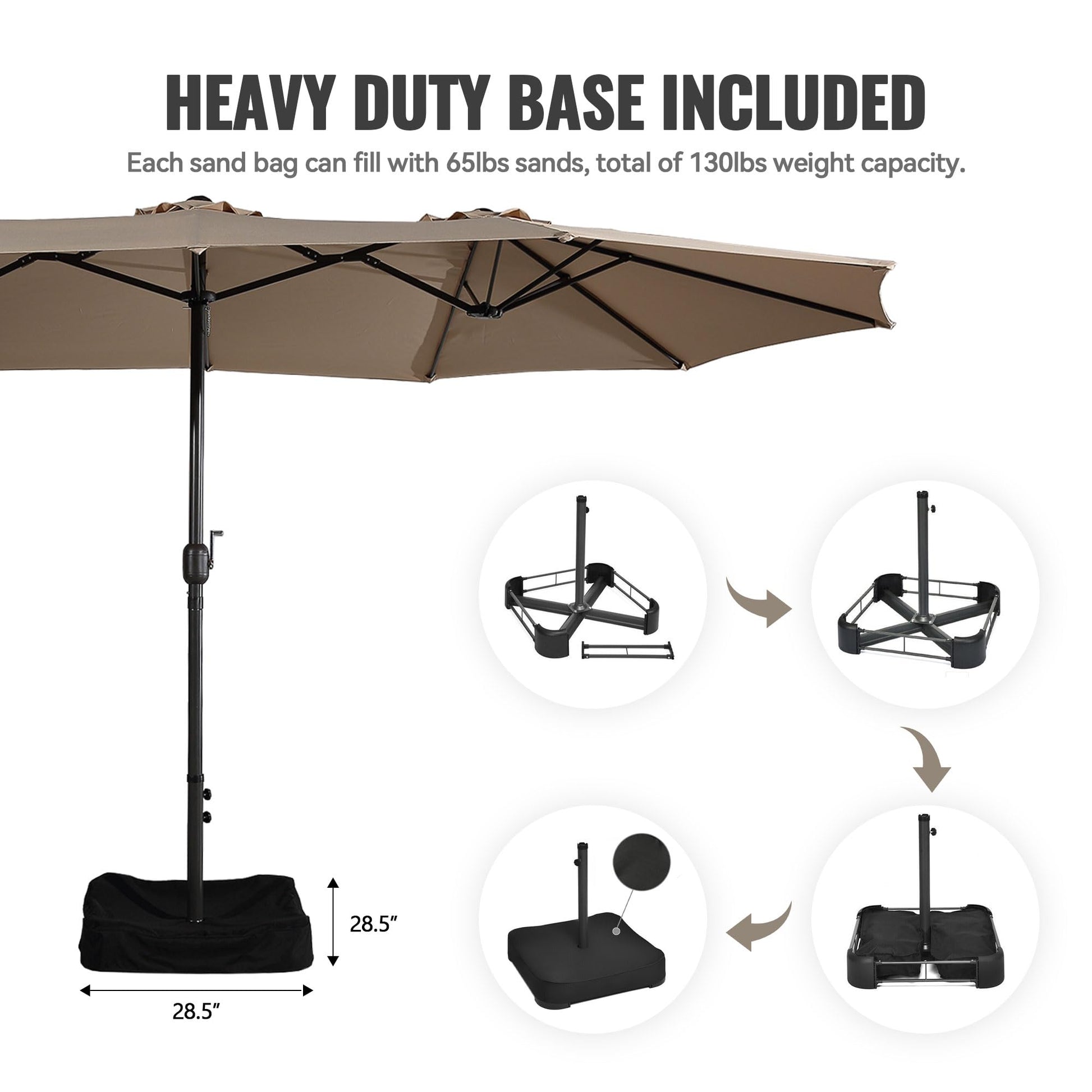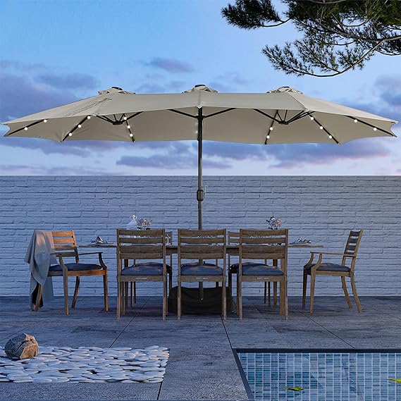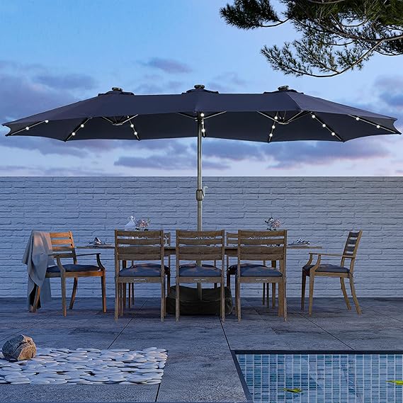 - 15 ft x 9 ft extra-large rectangular double-sided patio umbrella provides larger shading area up to 133 square feet shade area when fully open. Ideal for family parties, garden, backyard, poolside and any other outdoor area
