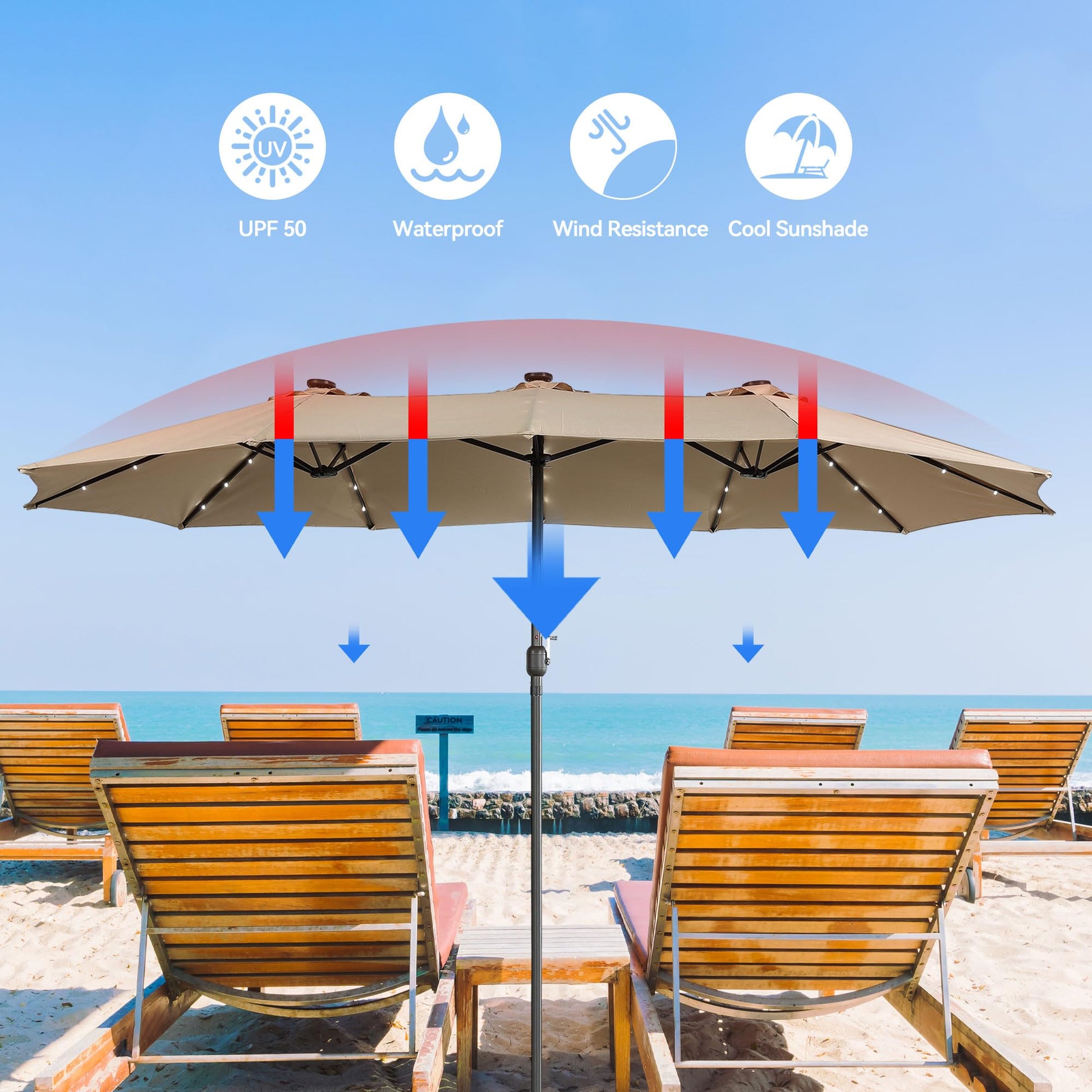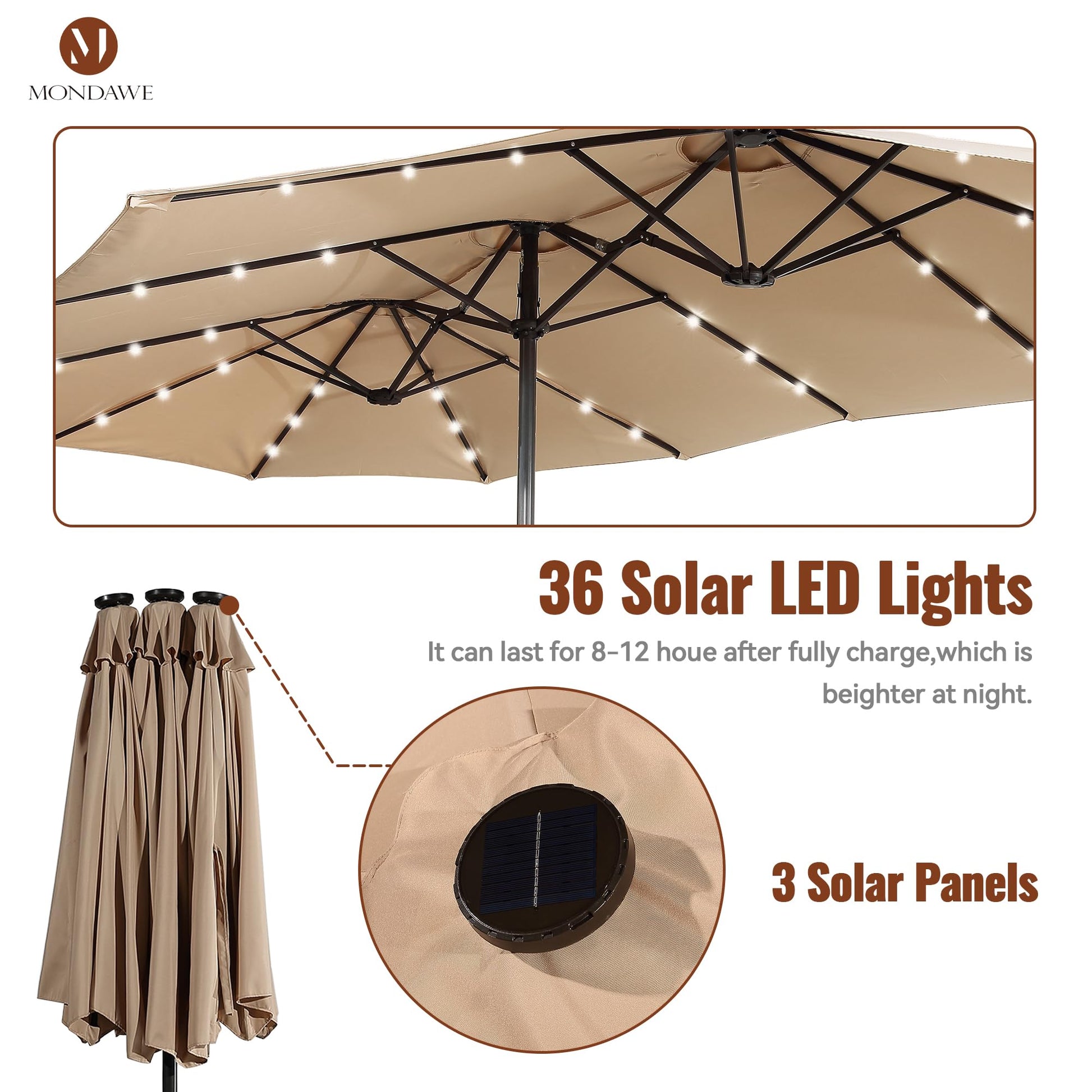 15ft Double Sided Patio Umbrella with Solar Lights (Base Included)