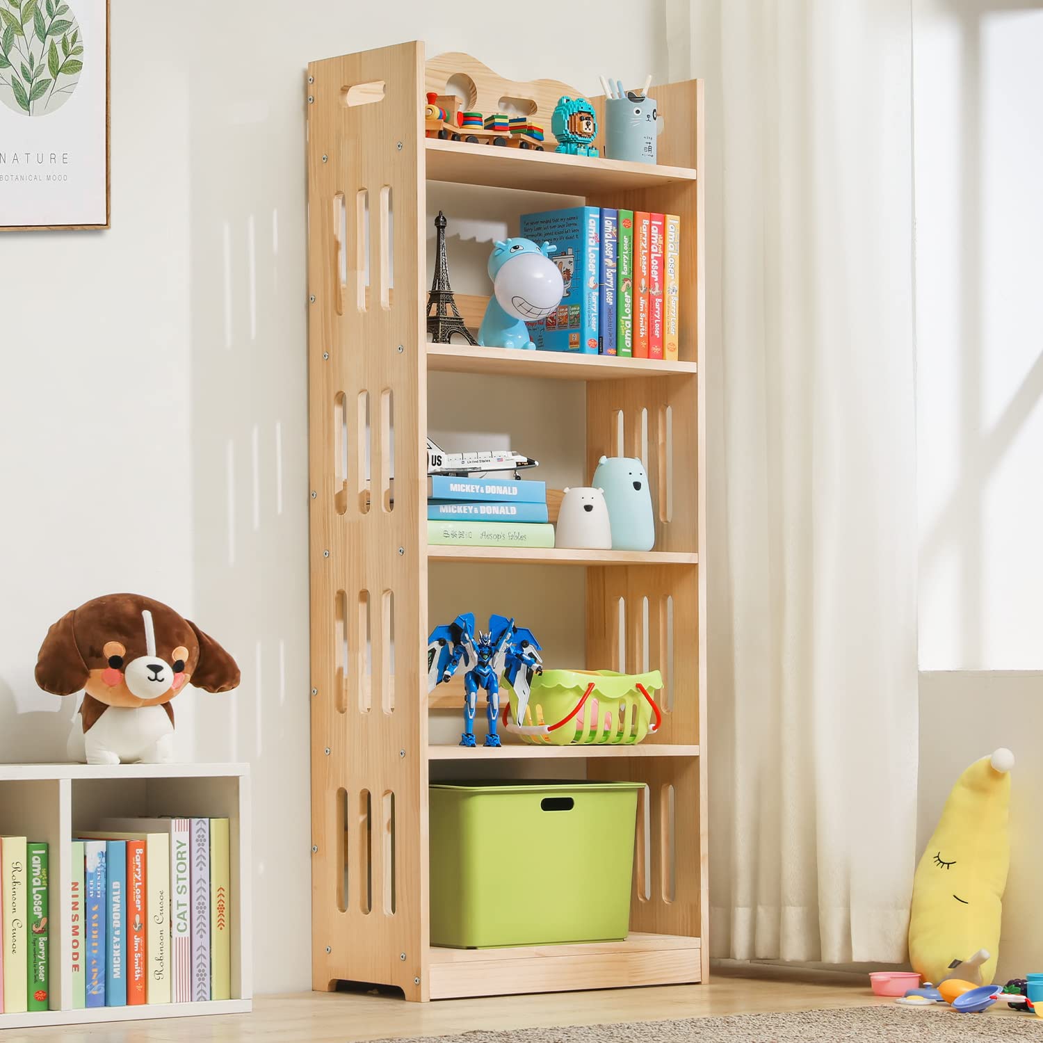 - Large Capacity - Multi-layer book shelves, with various compartments provide ample holding and display space for keeping books, toys, plants, and ornaments, etc. The top rippled edge and the hollow pattern design add interest and fun.