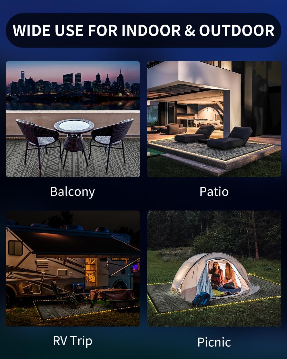-Outdoor Rug Carpet 6x9 ft for Patio RV Camping with Led Strip