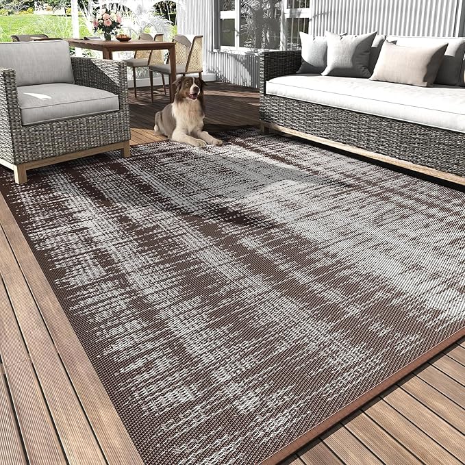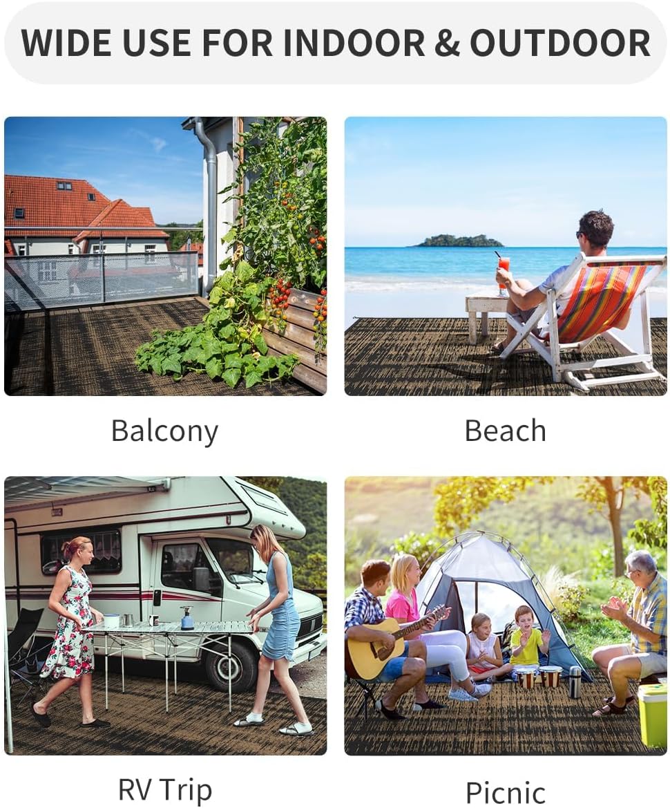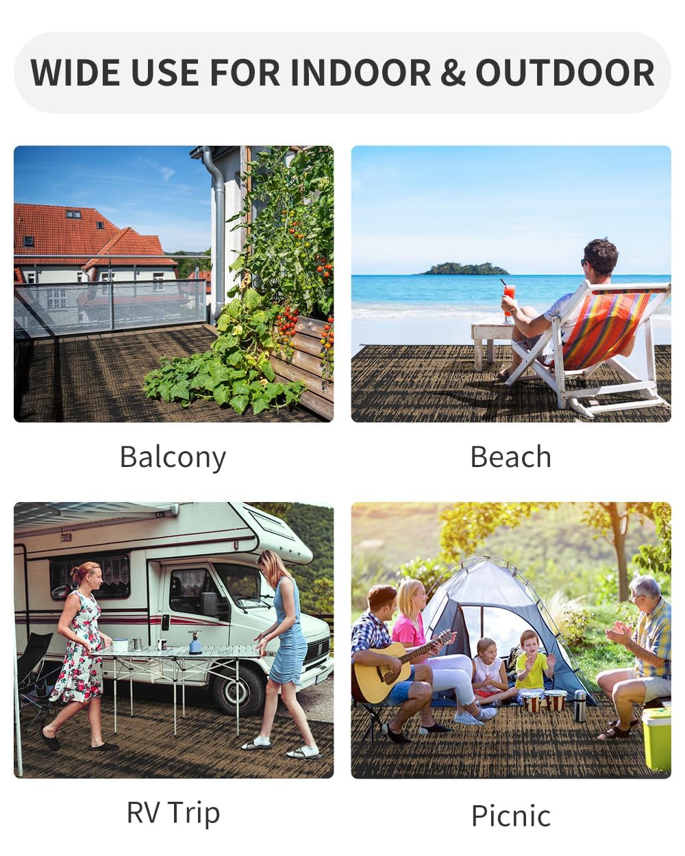 - Reversible & Versatile: Reversible mat offers a cost-effective way to get new designs and added convenience without buying a new rug. Large outdoor rugs perfect for outdoor enthusiasts to enhance entertainment spaces. This waterproof outdoor carpet can be widely used as outdoor patio rug under furniture sets, balcony rug, pool deck rug, porch rug, RV rugs for outside, beach mat, picnic mat, outdoor camping rug.
