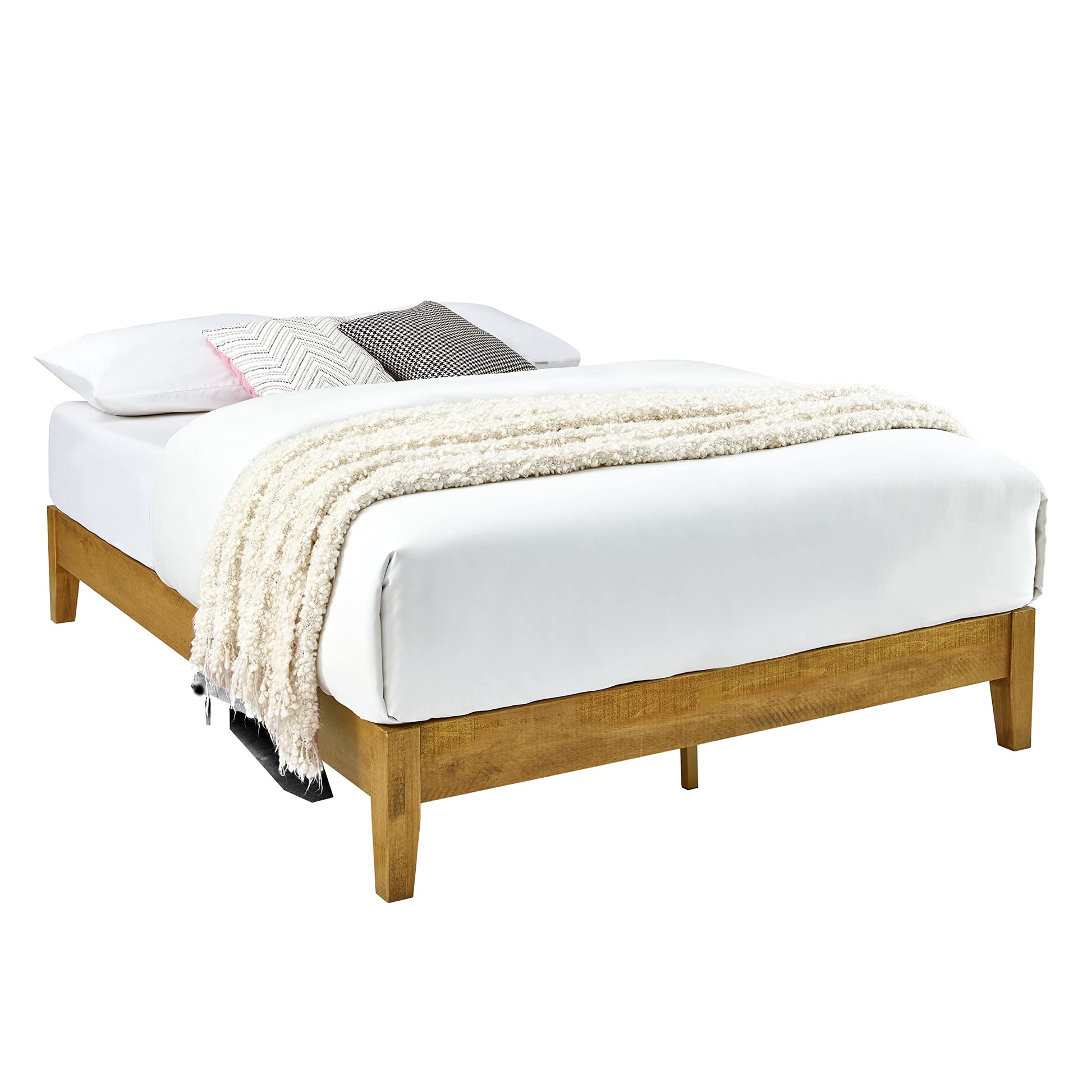 Mid-Century Wood Platform Bed Frame,No Box Spring Needed,Strong Wood Slat Support