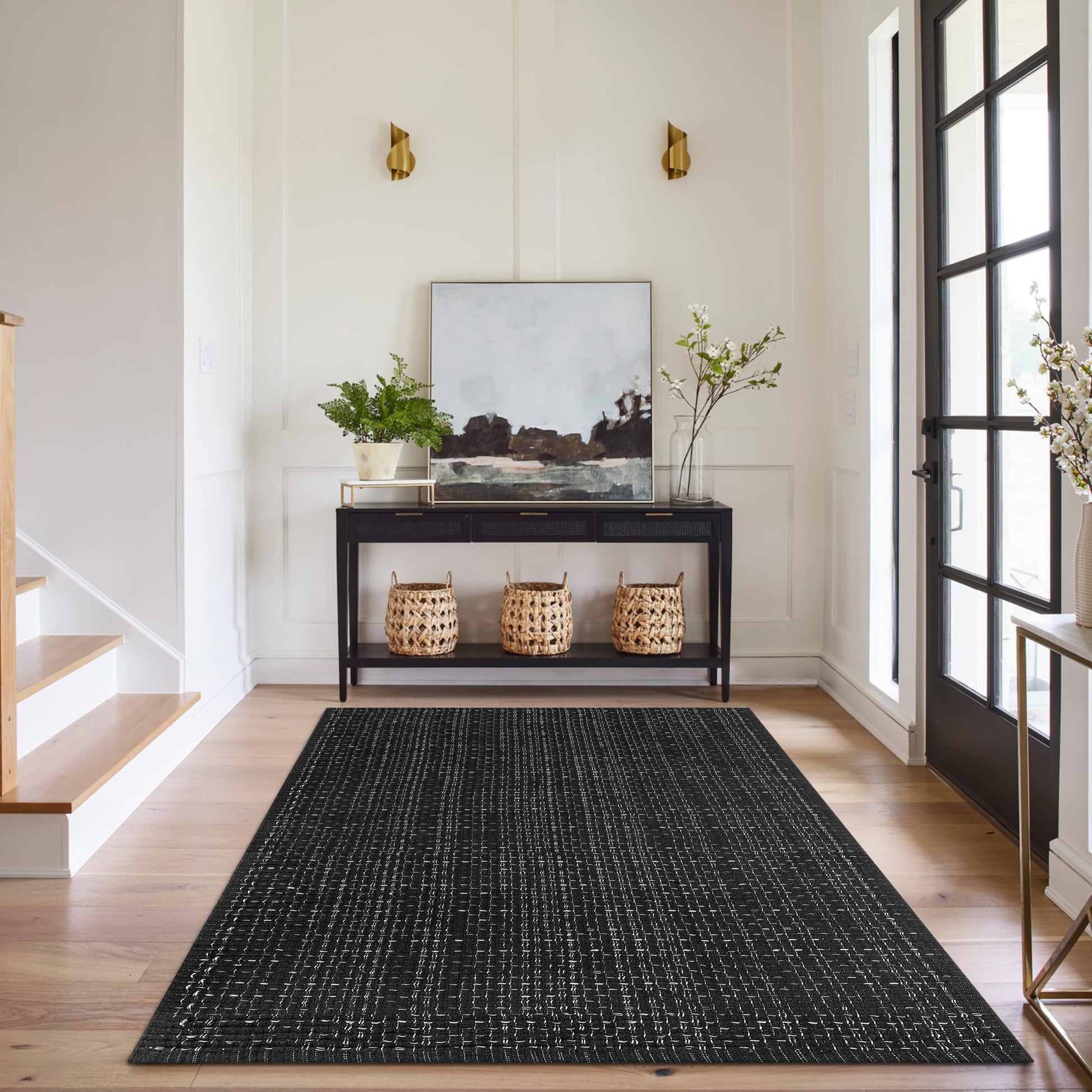 - Easy Cleaning & Machine Washable: The black and white area rug is easy to care for and washable, Keep your rug looking fresh with daily cleaning using a vacuum.For a deeper level of cleaning, simply toss it into the washing machine's gentle cycle with cold water. We recommend air drying after wash, to prolong the lifespan of your neutral rug