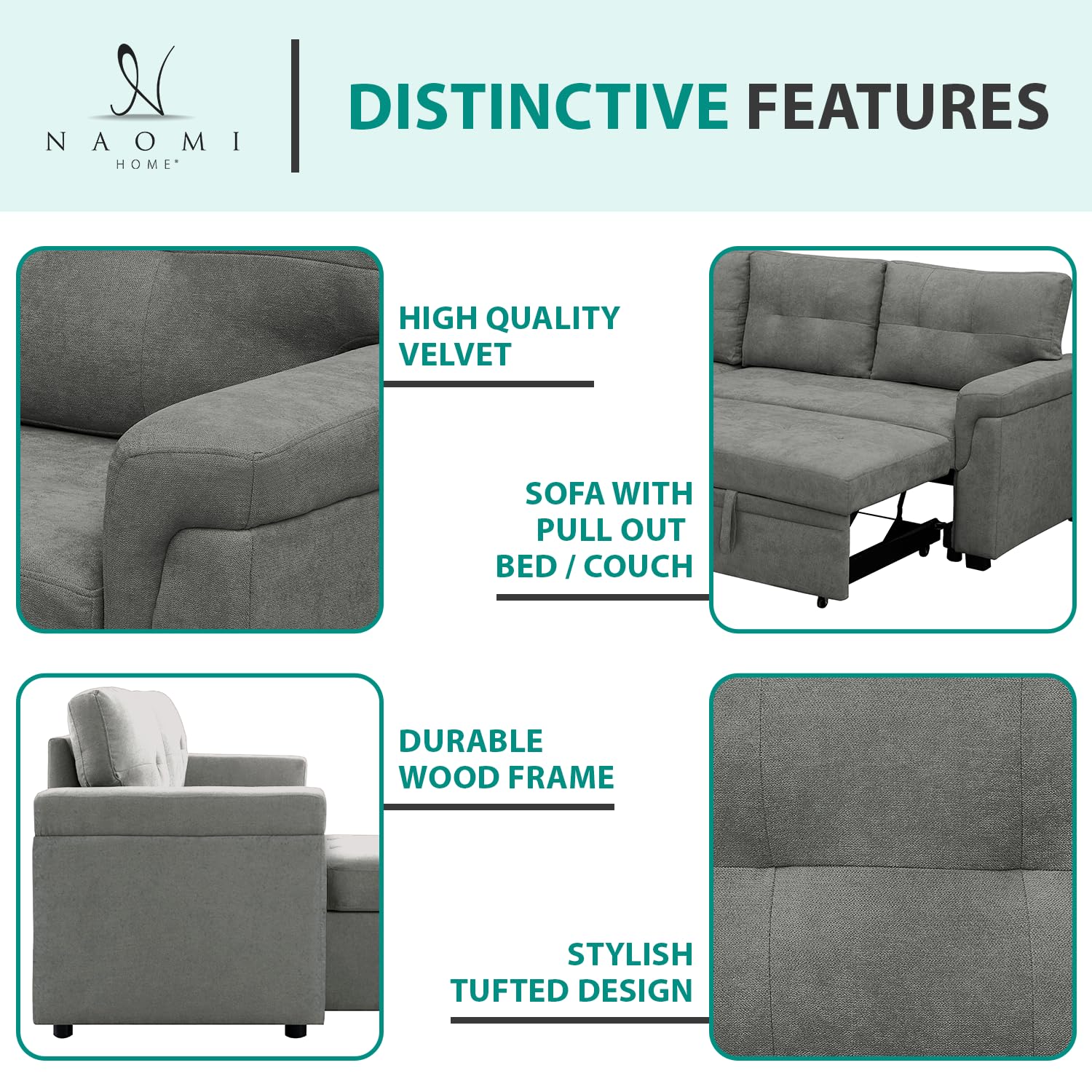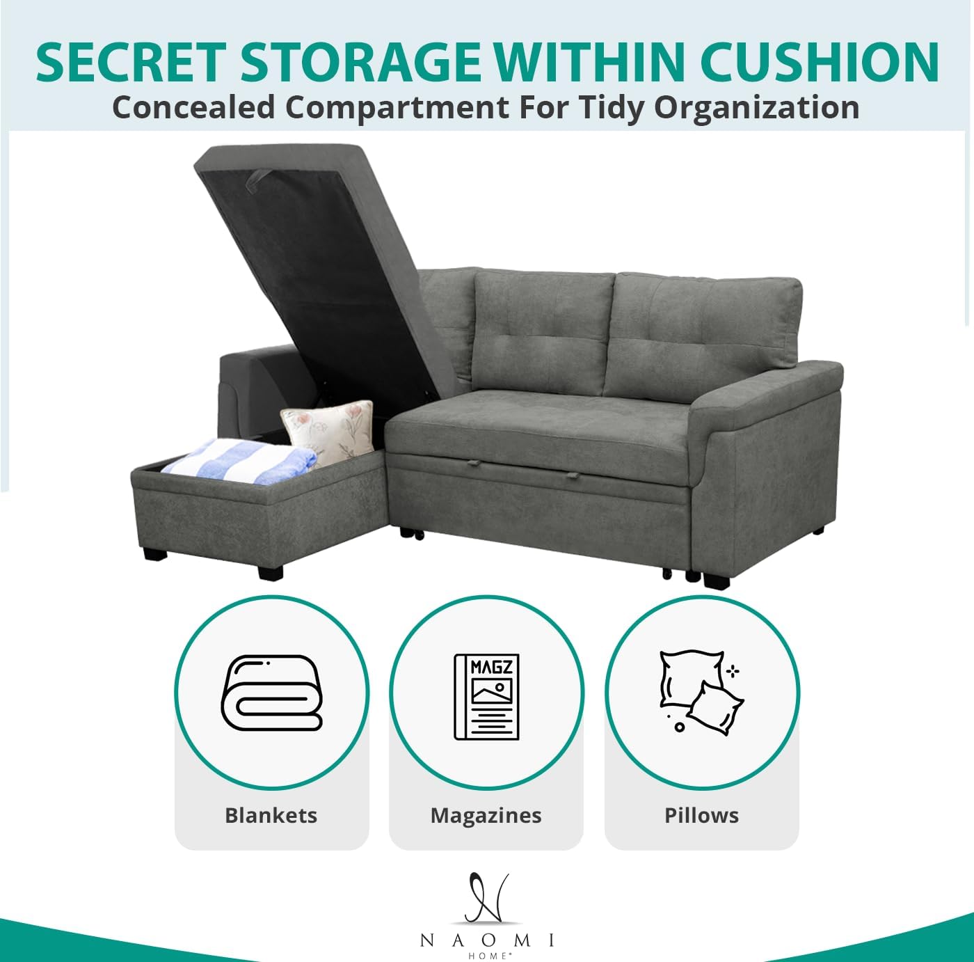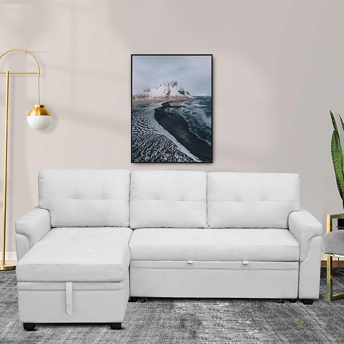 - SAY GOODBYE TO CLUTTER: With a savvy chaise design, you'll enjoy ample storage right in your living area. Keep your space organized without compromising on aesthetics. This pull out couch bed sleeper sofa is a game-changer: