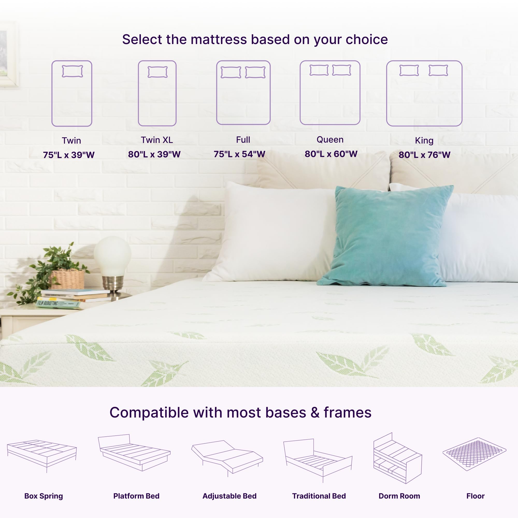 Twin XL Size Mattress, 6 Inch Anula Green Tea Infused Memory Foam Mattress