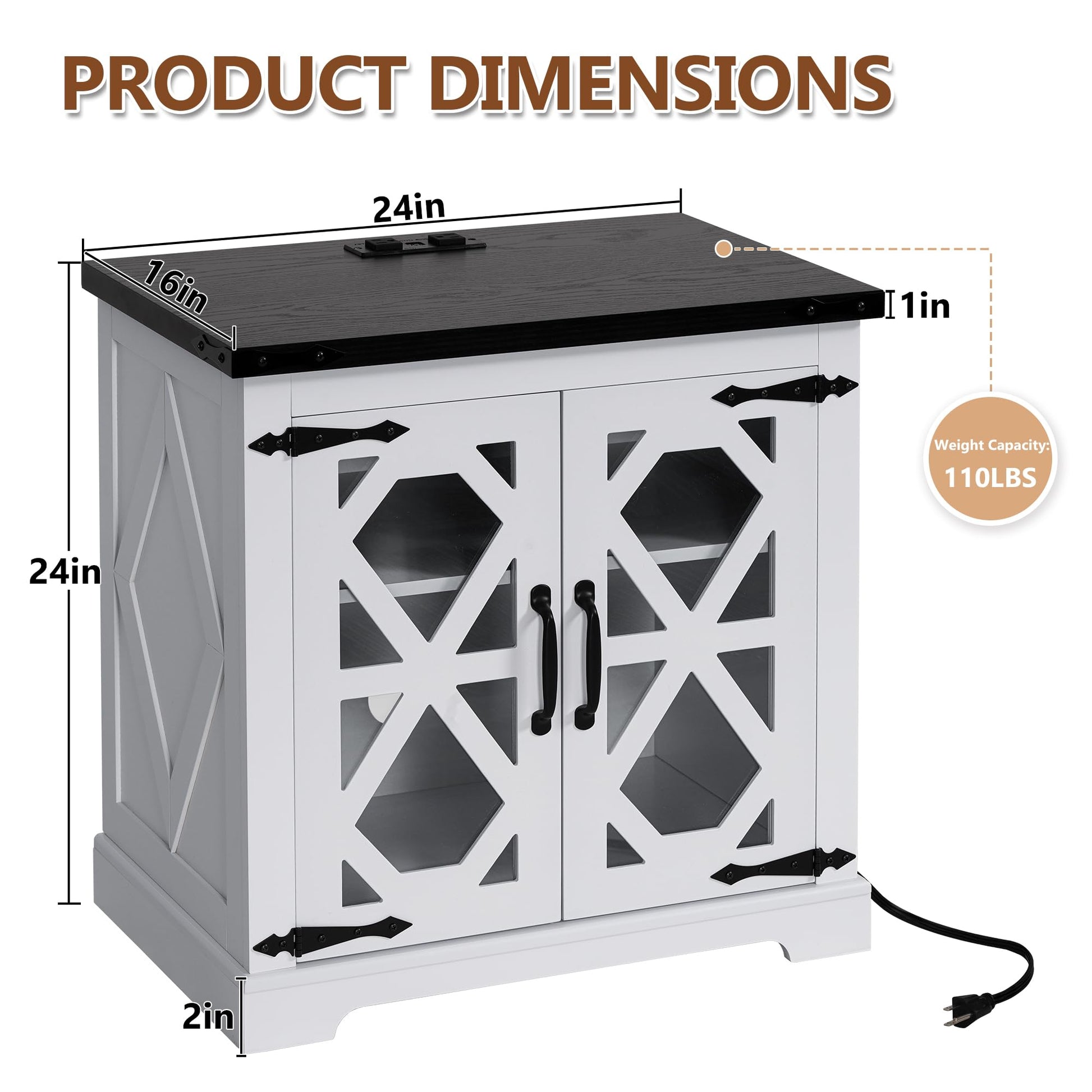 Farmhouse End Table, 24" Side Table with Charging Station, Night Stand
