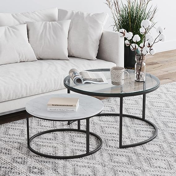 - Stella is a unique coffee table with its set of two round nesting tables for a modern space-saving solution in your living room.