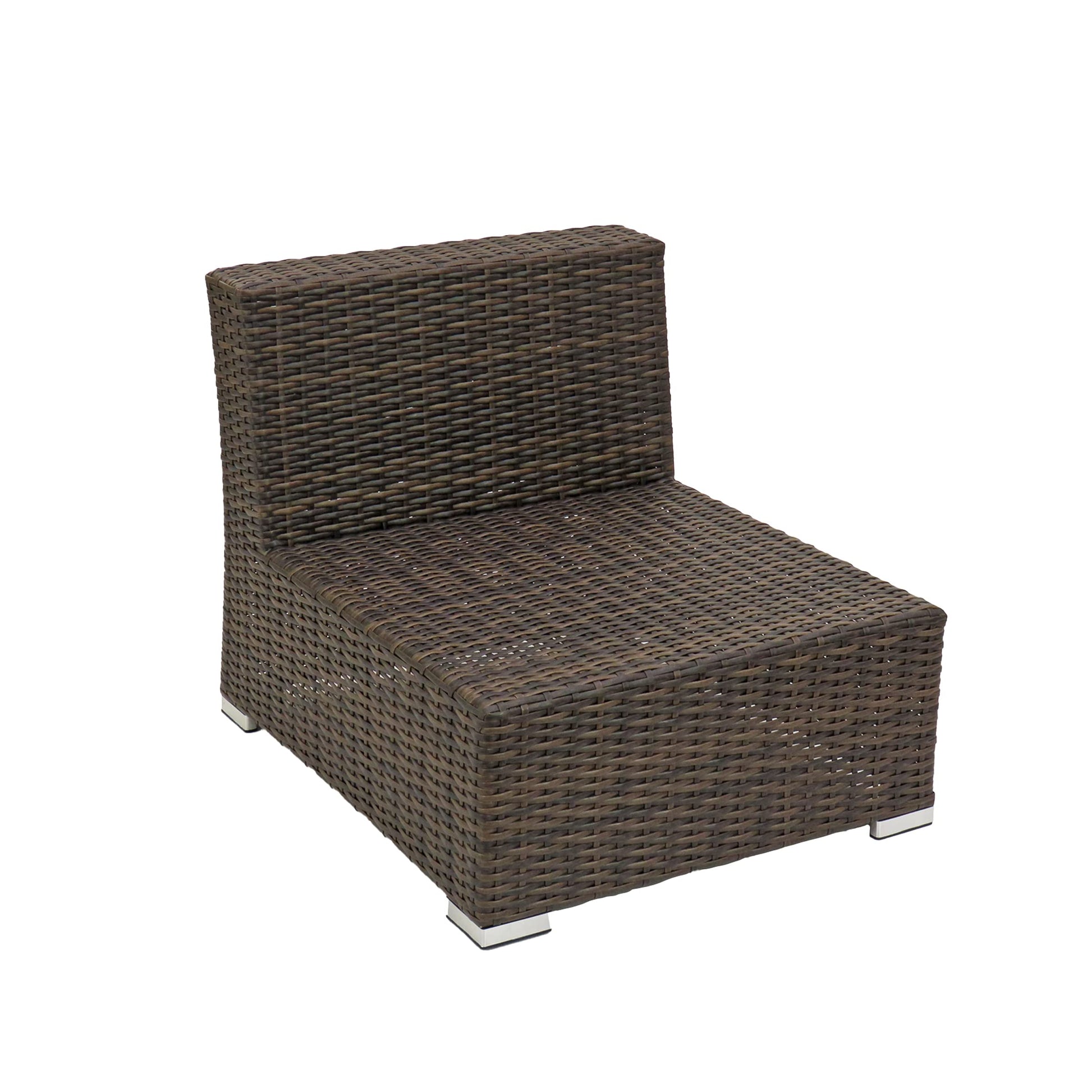 - Includes one 7 piece all weather sectional set with two cushioned seat sections that measure 27 inches in length, 33 inches in width and 27 inches in height and two corner sections that measure 33 inches in length, 33 inches in width and 27 inches in height