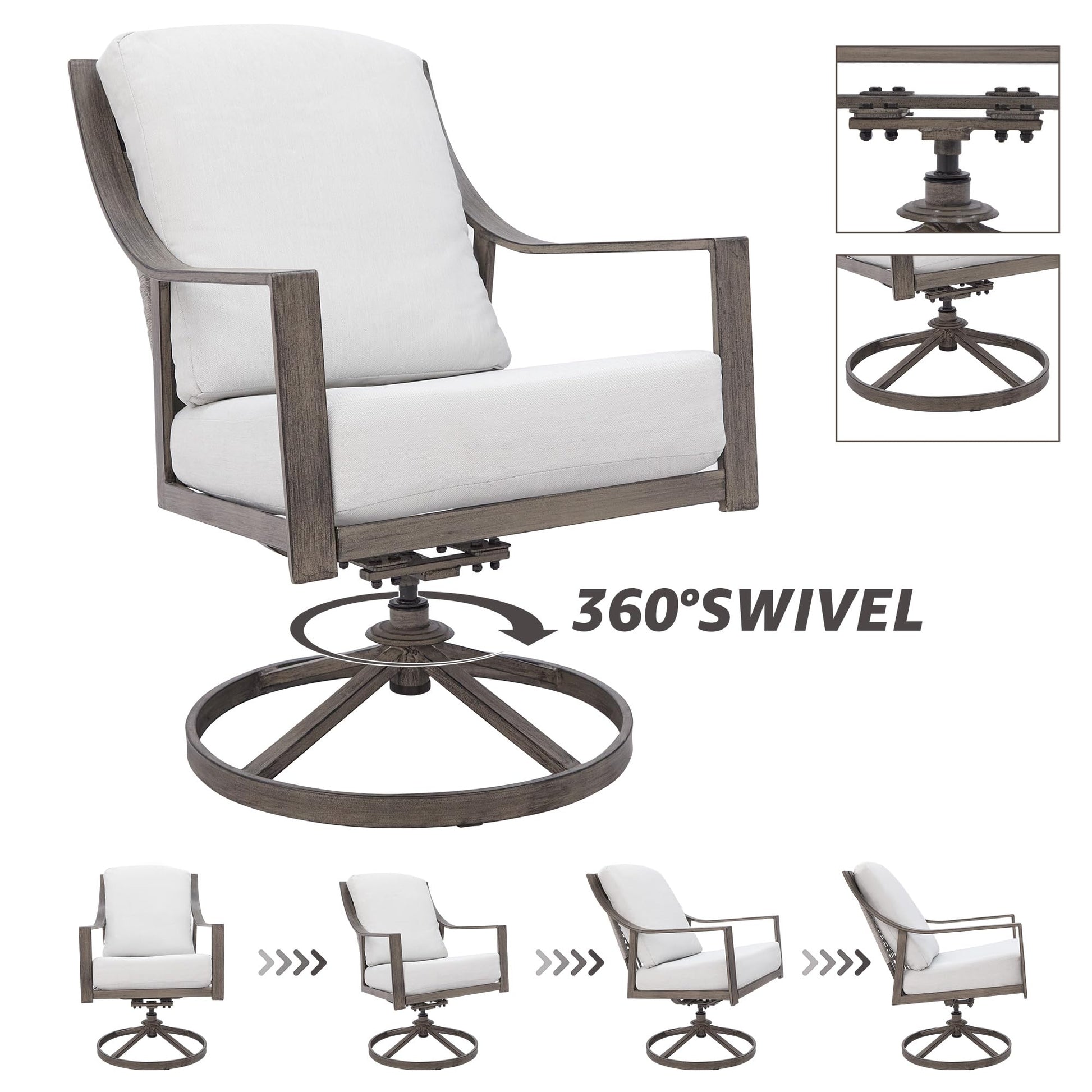 - 360°Swivel & Rocker Dining Chair: The round, swivel base, and wide seat design make the chair more stable. 360 degrees of smooth rotation, easy to turn on the seat, sitting for a long time, waist and legs can move. It's good for getting the blood circulating. 15-degree gentle rocking motion offers ideal relaxation. You can enjoy your daily leisure time in any position in this fully functional patio swivel chair.