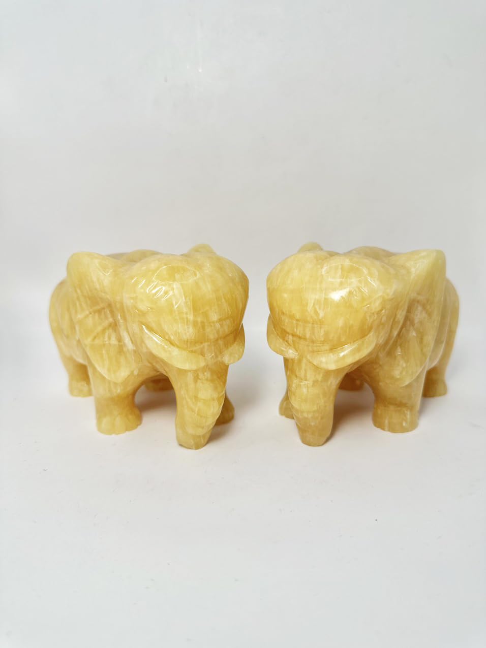 Yellow Onyx Marble Elephant Pair Statue Hand Carving Gifts Set of 2 Elephant Statue