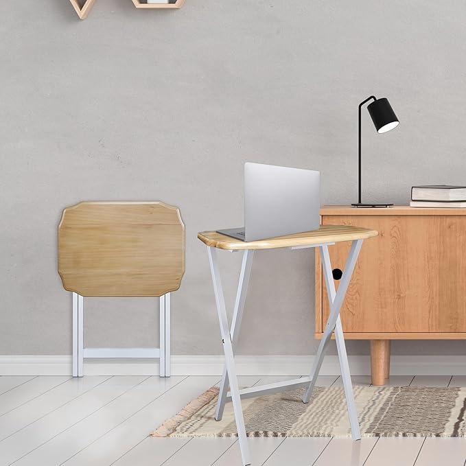 - Complete 5-Piece Set: Includes 4 foldable TV trays and a matching wood stand to neatly store them when not in use.