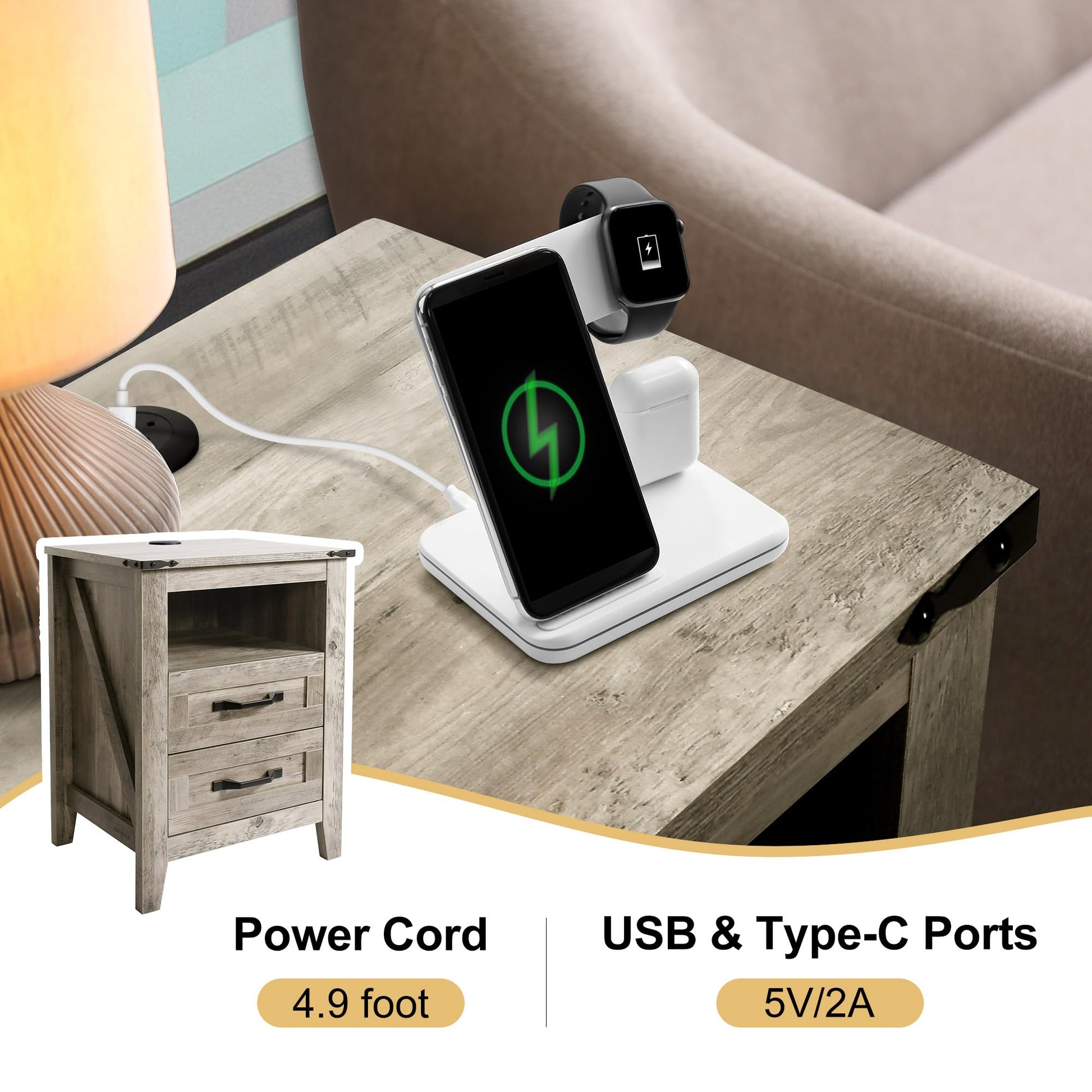 - In today's tech-driven world, having a charging station is essential. This nightstand is equipped with one Type-C and two USB ports. It offers a area to charge your electronic devices, keeping them within reach while you sleep. You can easily charge your phones, tablets overnight and wake up to fully charged devices, ready for the day ahead.
